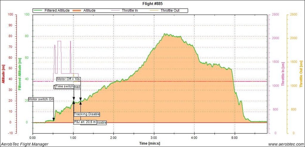 dokładnie 20m nad ziemią i 1:30h na drzewie jak pokazuje loger. Wyszła taka lokalna atrakcja turystyczna. Dziękuję bardzo Konradowi za próbę odzysku alpinistycznego i Władkowi za pomoc w organizacji ciężkiego sprzętu. Nie zamierzem tego powtarzać, bo drugi raz serducho nie da rady. jeden poważny błąd przy krążeniu zdecydował o zawisce. Fakt, że zaryzykowałem. Jarkowi w innym locie się udało, choć nie widział modelu przez 2-3sek. Przy okazji zrobiłem uprawnienia operatora podnośnika koszowego i osobiście podjąłem model z gałęzi strat brak. aaa, i w moim ostatnim 12 locie wygrzebałem się z 10 metrów i wyszedł 1000pkt T. Frąk był bardzo pomocny, przy czym za drążkami ja stałem -