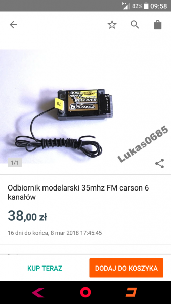 Witam, znajomy przywiózł mi znaleziony na złomowisku nadajnik. był cały brudny i się lepił w jakimś kleju czy innym smarze. Rozebrałem na części pierwsze, elektronikę wysuszyłem obudowy wymyłem, wszystko ładnie poskładałem. Po podaniu zasilania włącza się i wykazuje że baterie są w pełni naładowane (zasilacz ATX 12V). W nadajniku siedzi kwarc 78 FM TX 35.180 . Pytanie: Jaki należy dokupić odbiornik do tego nadajnika aby to zadziałało ? Może być jaki kolwiek odbiornik 35 MHz i komplet kwarcy czy jakiś dedykowany odbiornik E-Sky ? Pozdrawiam. -
