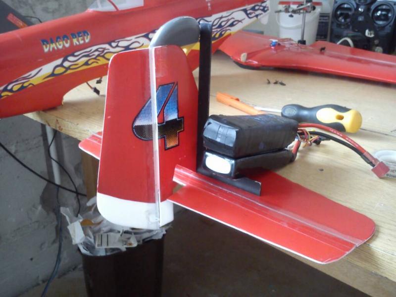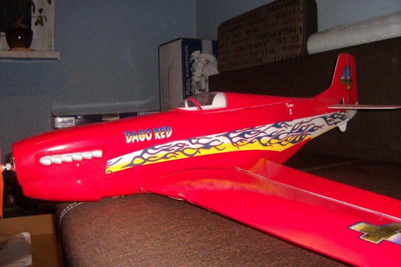 Z uwagi na ,,srogą'' zimę tego roku postanowiłem kupić jakiś model do polatania w wolnym czasie. Wybór padł na model ze stajni firmy Graupner. Samolot to bardzo dobrze znany każdemu dolnopłat P-51 Mustang w malowaniu Dago Red. Specyfikacja modelu Rozpiętość- 910 mm Długość. 780 mm Powierzchnia nośna skrzydeł 14.12 dm² Powierzchnia nośna kadłuba 2.56 dm² Całkowita powierzchnia nośna 16.68 dm² Model zakupiłem od kolegi z forum i tak prezentował się przed zakupem A tak prezentował się po długiej drodze przez Polskę Pierwszą rzeczą jaką zrobiłem to wziąłem się za naprawę ogonka Wyjąłem obydwa stateczniki, usunąłem resztki kleju, naprawiłem zawiasy i wkleiłem spowrotem do kadłuba Następną rzeczą jaką zrobiłem to naprawiłem servo lotek i ich cały napęd bo był rozklekotany i źle wklejony Servo miało odklejone dno Przykleiłem także odklejoną po całej długości górną część kadłuba wykonaną z cienkiego i łamliwego laminatu. Przyszedł czas na napęd, zamontowany silnik 890kV 112W nadawał się w tym modelu to robienia kółek po pokoju... Zamówiłem już silnik 350W 900kV o ciągu 1.1 kG co daje proporcję ciąg:masa modelu 2:1 Przewidziany regulator to ABC-Power 40A oraz pakiet Li-Po 3S 1600mAh 25C W modelu są zastosowane serva słabej jakości, i jak nie będą dawały sobie rady w powietrzu to zostaną wymienione. Kółka w tym modelu zostały natychmiast wymontowane, mocowanie ich w skrzydle nie zapewniało żadnego oparcia. Czekam na dostawę części (silnika, śmigieł) i niedługo nagram oblot modelu. Podsumowywując Graupner robi dobre aparatury ale modelu dobrze zrobić nie potrafi... Laminat jest cieniutki i słabo wzmocniony a reszta modelu to trochę cienkiej pianki i troszeczkę balsy... Jedynie domek silnika wykonany ze sklejki.