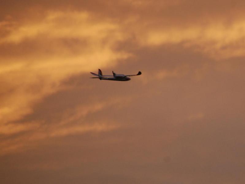 Witam! Chciałem się krótko podzielić fotkami z drugiego lotu mojego pierwszego samolociku-SKY SURFER oraz polecić ten samolot początkującym takim jak ja. Pierwszy lot odbył się pod okiem trenera no i oczywiście zabrakło aparatu. Drugi lot już samodzielnie wraz z moim osobistym fotografem-żonką. Mam nadzięję,że nie zanudzę,fotek wrzuciłem "kilka" ponieważ niebo wczoraj po zachodzie słońca była niesamowite. Co do samolotu to po wytrymowaniu lot jest bardzo precyzyjny, dobrze radzi sobie z lekkim wiatrem i super szybuje,jest dość wolny co pozwala nauczyć się nim lądować aczkolwiek na wysokich obrotach potrafi pokazać "pazur" -wiadomo,że nie to co bardziej zaawansowane latadła (kolega latał na pierwszym locie Zoomem 3d-bez komentarza ) ale myślę,że na początek jest niezły. To oczywiście samolot podobny bardzo do pioneera i bety, różnicami rzucającymi się w oczy są: mniejsze śmigło ale większe obroty silnika oraz chłopek w kabince-czad ). Tyle moich wynurzeń! Pozdrawiam wszystkich latających. Bogdan