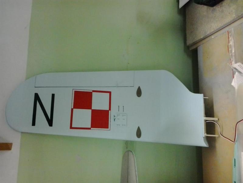 Dzięki za miłe słowa. W tej chwili napęd stanowi EMAX GT2215/12 KV900 ze śmigłem 11x3,8 Statycznie dla takiego zestawu zmierzyłem ponad 850g ciągu, a więc powinien ładnie i powoli latać (jak przystało na rasowy przedwojenny myśliwiec) Wcześniej był chiński czerwony no-name- teoretycznie o tych samych parametrach, ale niezależnie od użytych śmigieł nie wycisnąłem z niego więcej niż 650g. Ponieważ "makietowe" śmigło powinno mieć 12" więc musiałem zainwestować w nieco porządniejszy silnik, bo szkoda by było rozbić ślicznotkę w pierwszych lotach z powodu niewydolnego napędu. Reszta bebechów, inaczej niż w pierwowzorze, ulokowana w komorze wygospodarowanej w górze i nosie kadłuba - pod skrzydłem, które jest zdejmowane i dzielone - stąd te "śrubunki" przy zastrzałach.