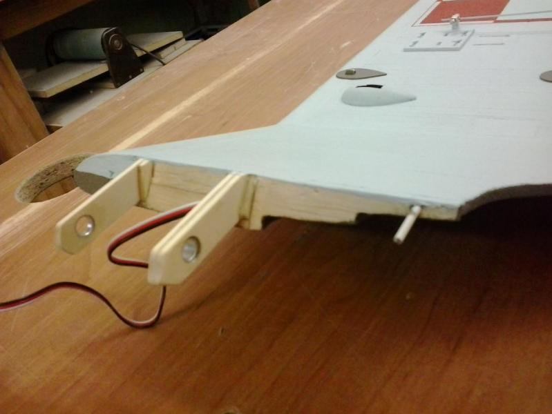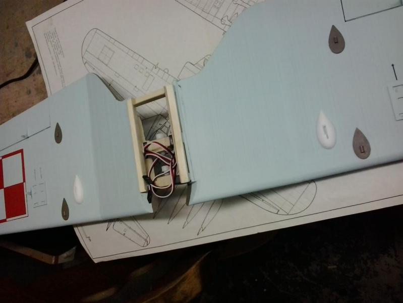 Obiecałem foty mocowania skrzydeł, ale pudło transportowe z p11c troszkę przyciśnięte innymi modelami, więc zanim odkopię i sfotografuję jak trzeba załączam co nieco z archiwum. W skrzydłach są dwa dźwigary - z przodu i na wysokości pierwszego stopnia profilu. Do dźwigarów doklejone są szufladki / bagnety z kilku warstw balsosklejki zamknięte z góry i dołu daszkami ze sklejki 0,8. Końcówki szufladek obwiązane węglowym rowingiem. Szufladki / bagnety są przewiercone i w otwory wklejone są pierścionki cięte z rurki aluminiowej fi 8, dla zabezpieczenia miejsca łączenia płatów przetyczkami z śrub nylonowych. Szufladki są wklejone w prawym płacie i połączone ramką z balsosklejki. Tylna beleczka tej ramki wsuwa się w półeczkę na tylnej ściance wnęki kadłuba. Śruba łącząca przedni dźwigar wystaje do przodu, co umożliwia je wkręcenie w nakrętkę kłową w przedniej ściance wnęki kadłuba. Zastrzały przykręcane do kadłuba za pomocą kostek elektrycznych podobnie jak golenie i cięgna podwozia, zaś w płatach wsuwane w tulejki z blaszki i sklejki 0,8. -