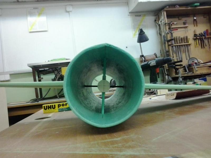 Robert - dzięki za szybka odpowiedz - zamiast kombinowania ze sklejkowymi wkładkami użyję izolacji. Poniżej dotychczasowy efekt czterech wieczorów dłubania - błagam, nie krytykujcie staranności wykonania ... Waga tego co na fotach to 125g, zatem zapowiada się na ponad 300g do lotu. Rozpiętośc 98cm. Konstrukcja trochę zmieniona - podstawą jest wewnętrzny tunel z podkładu 3mm - wlot fi 140, wylot fi 120 i 600mm długości. Znając skromne możliwości EMAX'a 2805 rozważam wstawienie do środka takiego zestawu. http://www.hobbyking...idProduct=34223 http://www.abc-rc.pl/FPCA305 - Śmigło średnicy 5 cali i 6 łopat Mam nadzieję, że przy KV2150 silnika układ taki da efekt zbliżony do turbinek EDF i przetłoczy przez tunel wystarczająco dużo powietrza do komfortowego lotu. Co o tym myślcie, sprawdzi się ?