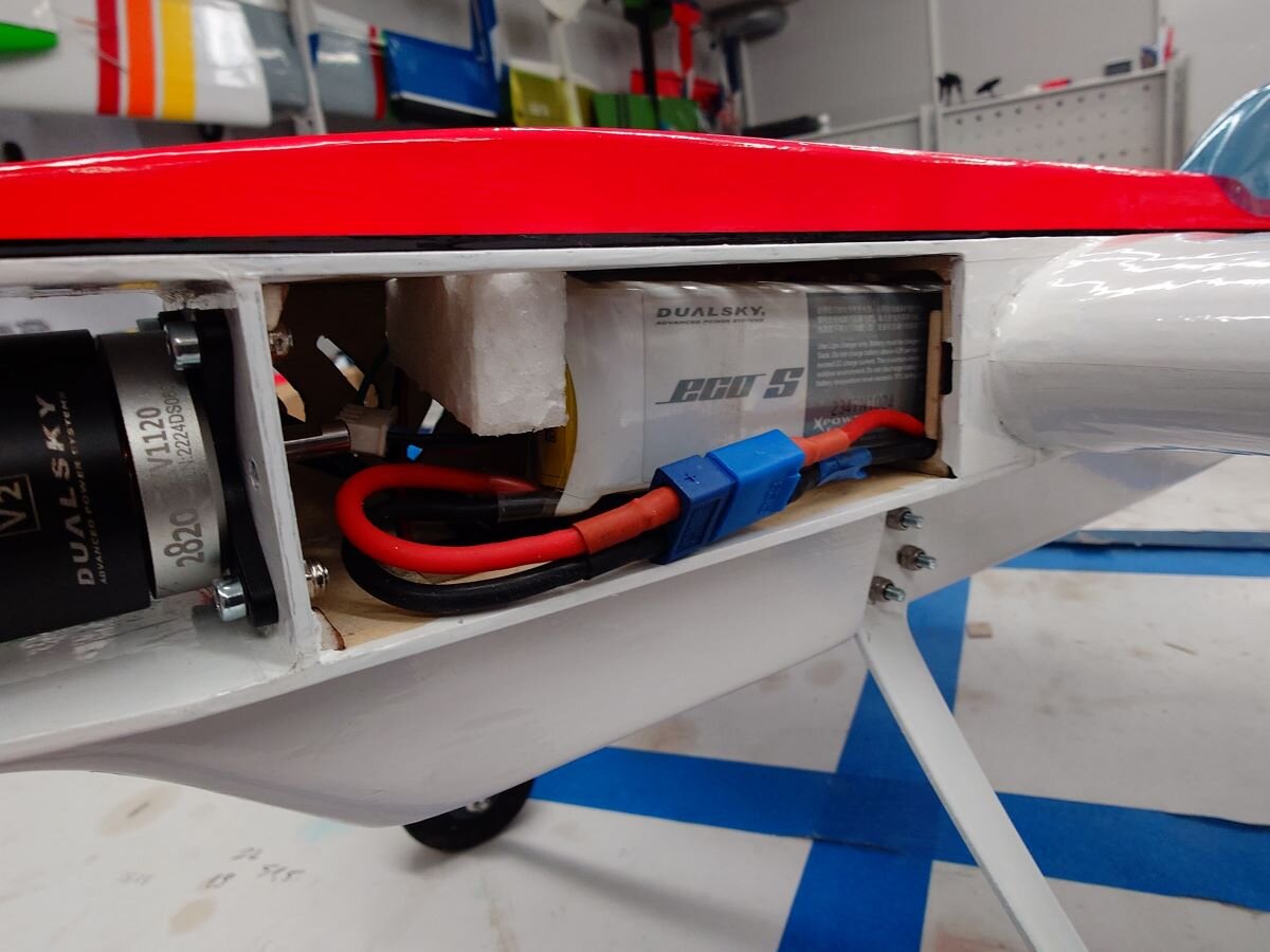 Planowany jest silnik DUALSKY 2820 ECO 1120 KV ze śmigłem Carbonlight 9x6, Regulator Dualsky XC4015BA - 40A.