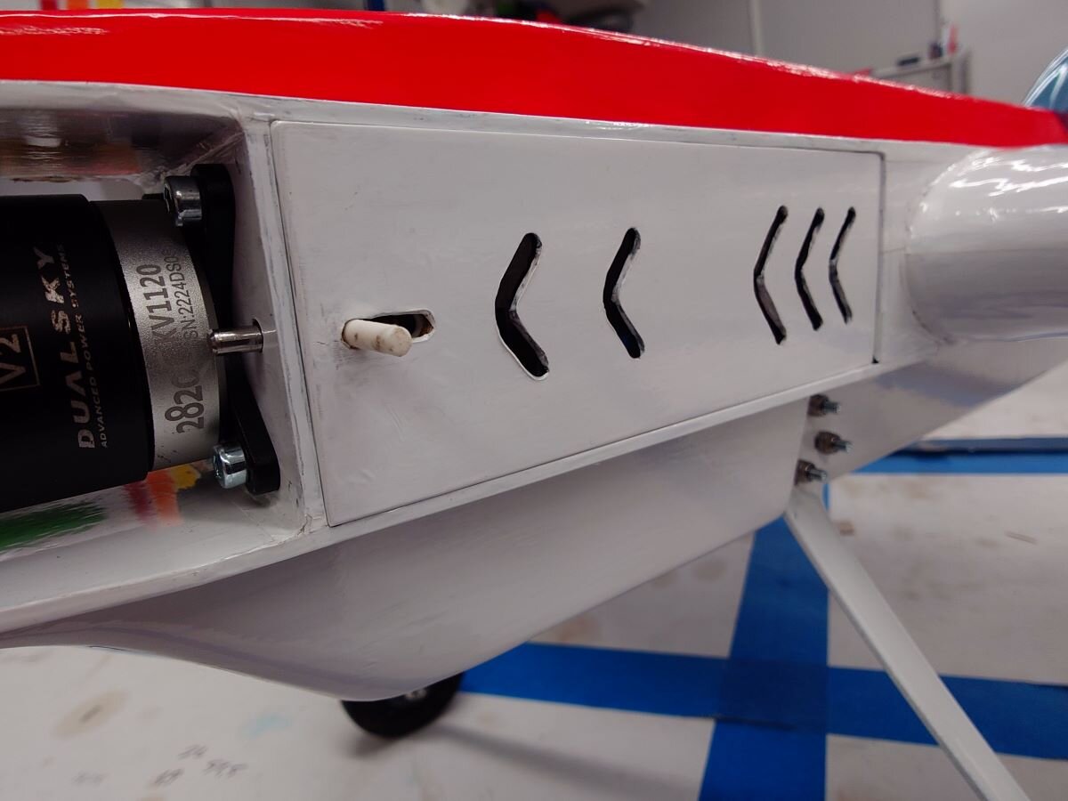Dobra robota. Podoba mi sie. Moja propozycja: jak nie bedzie problemu z COG to silnik  Dualsky 2814-1330kv i smiglo 9x5 by wystarczyl. Ponad 30gr. mniej wazy. Przez mniejszy skok smigla model (prawdopodobnie?) bedzie sie mniej rozpedzal w locie pionowym w dol.