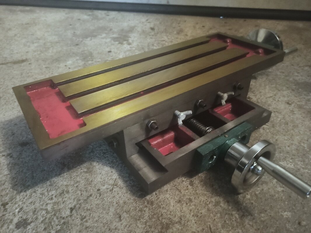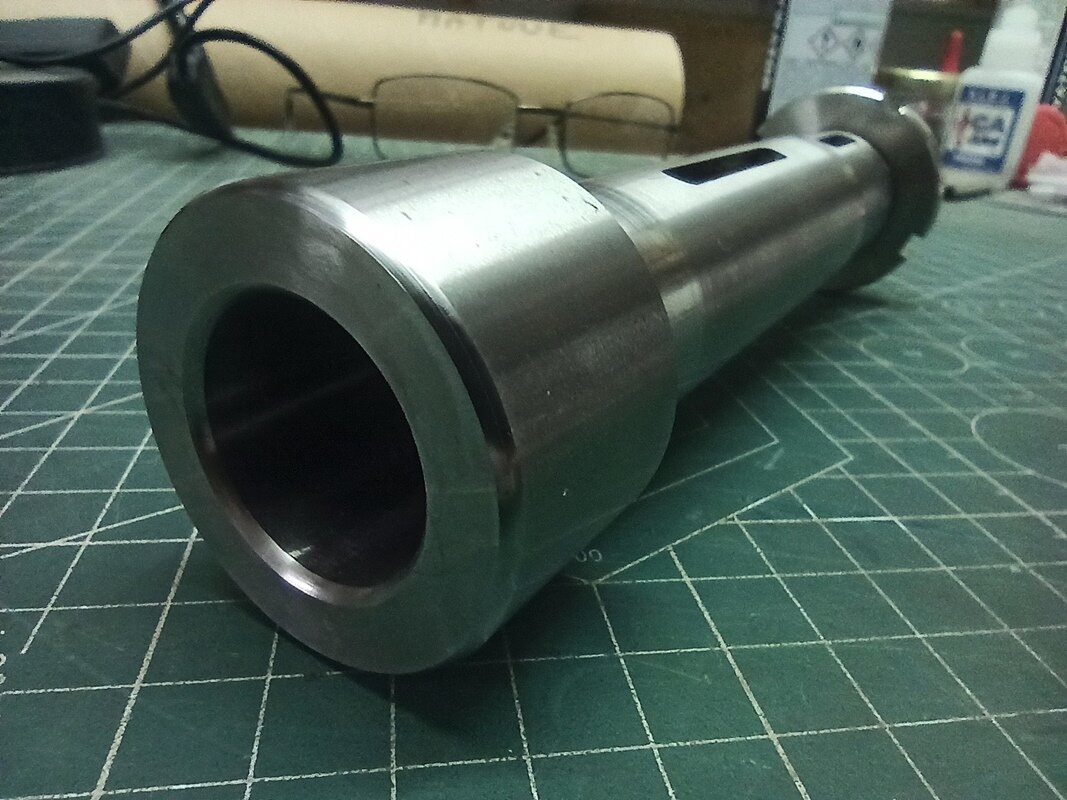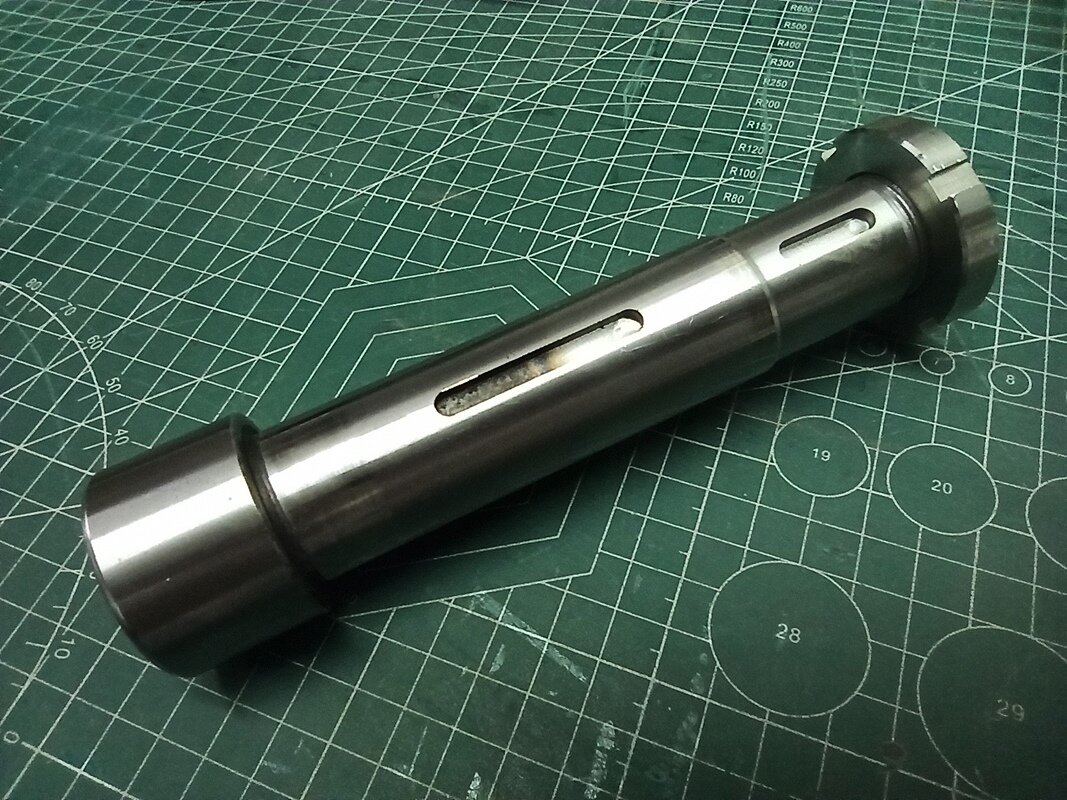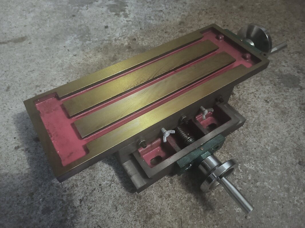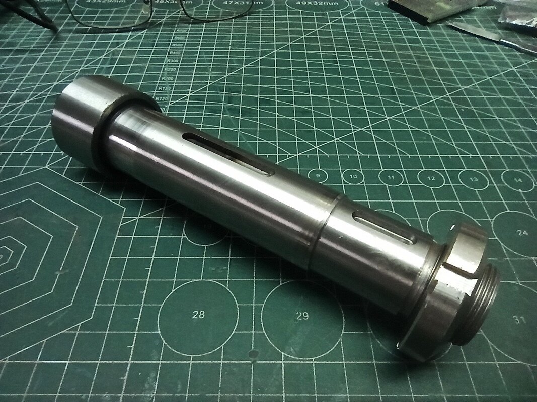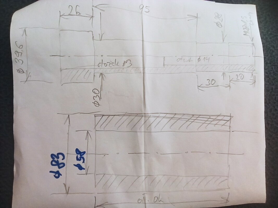 rosik Opublikowano 3 godziny temu Opublikowano 3 godziny temu WITAM Kolejny projekt z mechaniki, który zamierzam zrealizować. Chodzi mi po głowie już ładnych kilka lat. Ale do rzeczy. Przez lata zgromadziłem sporo różnych podzespołów które mogę wykorzystać do budowy takiej maszynki. Z początku wszystkie posuwy myślałem zrealizować na prowadnicach liniowych (posiadam używane ,,REXROTH,,), ale ostatecznie tylko oś ,,Z,, ma pracować na w/w prowadnicach a osie ,,X,, i ,,Y,, ma zastąpić stół krzyżowy: Wiadomo stolik ten jakością ,,d**y,, nie urywa, ale myślę że po niewielkich modyfikacjach będzie spełniał swoje zadanie. Chociaż w przyszłości wykonam może drugi stół ale na prowadnicach liniowych i z większymi zakresami posuwów. Posiadam też taki oto wałek wrzeciona ze stożkiem ,,Morse'a 3,, do jakiejś chińskiej mini frezarki. Wymiary wałka podaję na załączonym rysunku (sorki że rysowany na szybko ręcznie). Znalazłem jeszcze u siebie oprawkę na tulejki ER32 oraz sporo różnych frezów do metalu. Byłoby żal tego nie wykorzystać. ku A oto taki szybki rysunek do łożysk skośnych (kolor żółty). Na rysunku kasowanie luzu poprzez koło pasowe i niewielki pierścień nakrętką z lewym gwintem M27x1,5 No i teraz przechodzimy do sedna. Otóż wykonanie wrzeciona na wyżej pokazanym gotowym wałku. Chodzi mi o to jaki najlepiej typ łożysk zastosować - stożkowe czy może jednak skośne i jak w ich przypadku najlepiej rozwiązać kasowanie luzów. W przypadku stożkowych myślałem o jednym z przodu wałka i jednym z tyłu. W przypadku skośnych - dwie szt. z przodu wałka i jedno z tyłu. Czy może lepiej dwórzędowe z przodu i jednorzędowe z tyłu? Kolejne pytanie to z jakimi kątami pracy w takim urządzeniu byłyby łożyska skośne najlepsze. Jak je rozwiązać w obudowie wrzeciona odnośnie naprężeń i kasowania luzów. Wiadomo też - tak jak u może większości wolałbym nie generować niepotrzebnych kosztów. Liczę się z tym, że nie uzyskam na niej takich efektów jak na maszynie fabrycznej, ale myślę że warto spróbować. Wiem, że są obecni na tym forum Koledzy którzy posiadają niesamowitą wiedzę w temacie mechaniki i może zechcą się nią co nieco podzielić? Kiedyś popularne było takie powiedzenie ,,POMOŻECIE,,😉? Z góry dziękuję i pozdrawiam. Grzegorz