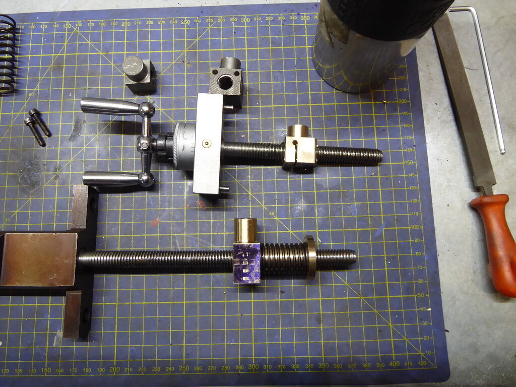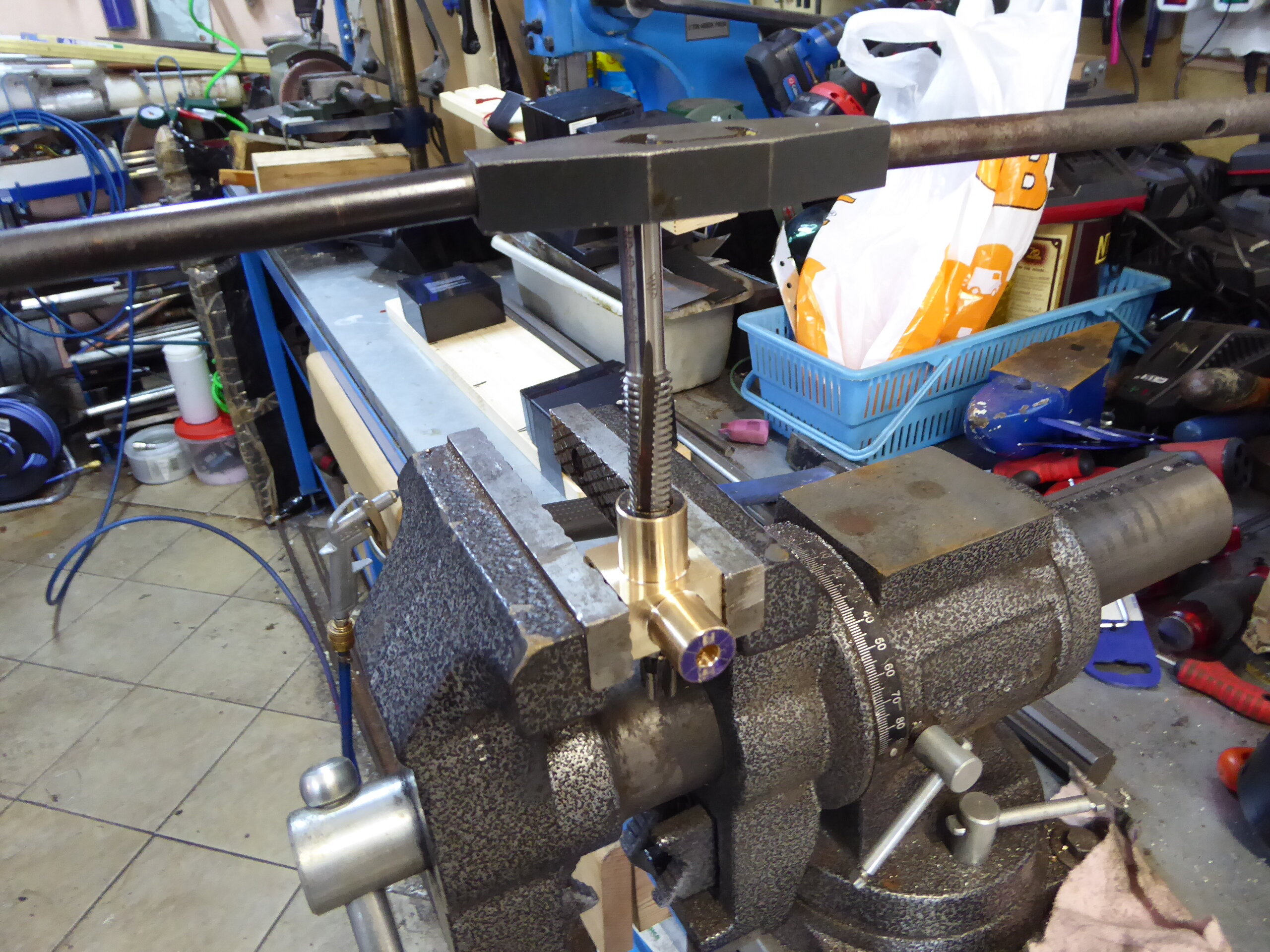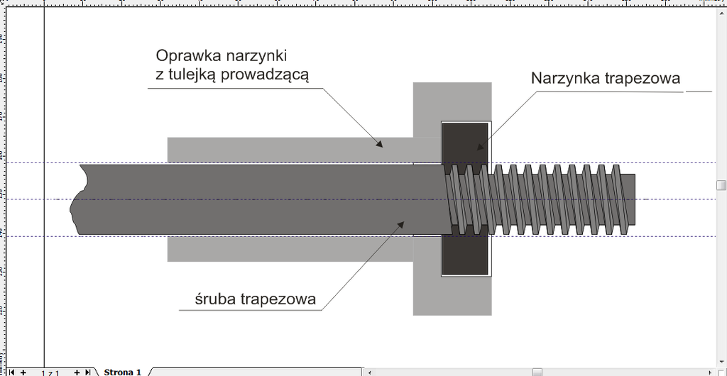 rosik Opublikowano 4 godziny temu Autor Opublikowano 4 godziny temu 18 godzin temu, RomanJ4 napisał: Tak, robiłem nakrętki Tr12x2LH(lewe) w brązie dla jednego z naszych kolegów z forum, i muszę ostrzec, ze ze względu na bardzo długi nakrój takich gwintowników(skrawa wiele zębów na raz), opory skrawania są bardzo duże już przy 12-tce (widać wielkość pokrętła przy którym i tak trzeba użyć znacznej siły), a wraz ze wzrostem średnicy i powiększającym się przekrojem wrębu zwoju(x3) opory będą jeszcze proporcjonalnie większe, zwłaszcza w ciągliwych metalach. Nie znaczy to, że się nie da nimi naciąć, nie, nie, po to w końcu są, tylko trzeba często, np co pół obrotu łamać wiór(cofać) by opory skrawania możliwie minimalizować. To ręcznie, a jeśli nacinać maszynowo w tokarce, to musi być mocna i sztywna maszyna z minimalnymi obrotami rzędu 40-80/min i dużą uwagą by nie ukręcić gwintownika.(zwłaszcza 12-tki mającej cieńszy od 14-tki rdzeń). a najlepiej byłoby naciąć zgrubnie nożem, a gwintownikiem kalibrować. Z narzynkami z kolei, ze względu na krótki nakrój a duży wiór, jest trudność z prostopadłym wprowadzaniem narzynki na materiał, więc najlepiej robić to w tokarce z konika za pomocą "lufki", A jeżeli już ręcznie, to najlepiej przed gwintowanym odcinkiem zatoczyć trzpień prowadzący o średnicy rdzenia gwintu na który wejdzie narzynka bez nacinania gwintu. Po nagwintowaniu można go obciąć. Na pewno kiedyś mogą się przydać jak każde inne narzędzie jeśli zajmujesz się(hobbystycznie) też wiórotwórstwem... I oczywiście obfite smarowanie, np Tereborem* lub ostatecznie olejem lnianym(ten z czasem zasycha na kamień, więc trzeba go wymywać) * - https://allegro.pl/oferta/olej-do-gwintowania-plyn-preparat-terebor-250-ml-wiercenia-17719475348 No to stopniowo wyjaśniają się moje wątpliwości. Myślałem wcześniej o czymś takim, jak na zdjęciu poniżej. Po prostu myślałem wytoczyć specjalną oprawkę narzynki z tulejką stabilizującą-prowadzącą z minimalnym luzem. A jak takie gwinty wychodzą odnośnie jakości. Czy nie są np. jakieś postrzępione, czy po narzynce nie mają np. zbytniego luzu itp.? Ciekaw jestem czy dałbym radę tymi metodami wykonać śrubę posuwu osi ,,Z,,. Te komplety narzynek i gwintowników które posiadam to: 12x2 lewy, 14x2 lewy oraz 20x3 prawy. Ew poszukam jeszcze 18x2 bo myśle, że taki by mi najbardziej pasował. Ewentualnie ta 20-stka. Jeszcze pomyślę. Pozdrawiam i życzę wszystkim zdrowego, szczęśliwego i spokojnego Nowego Roku🍾🥂😊.