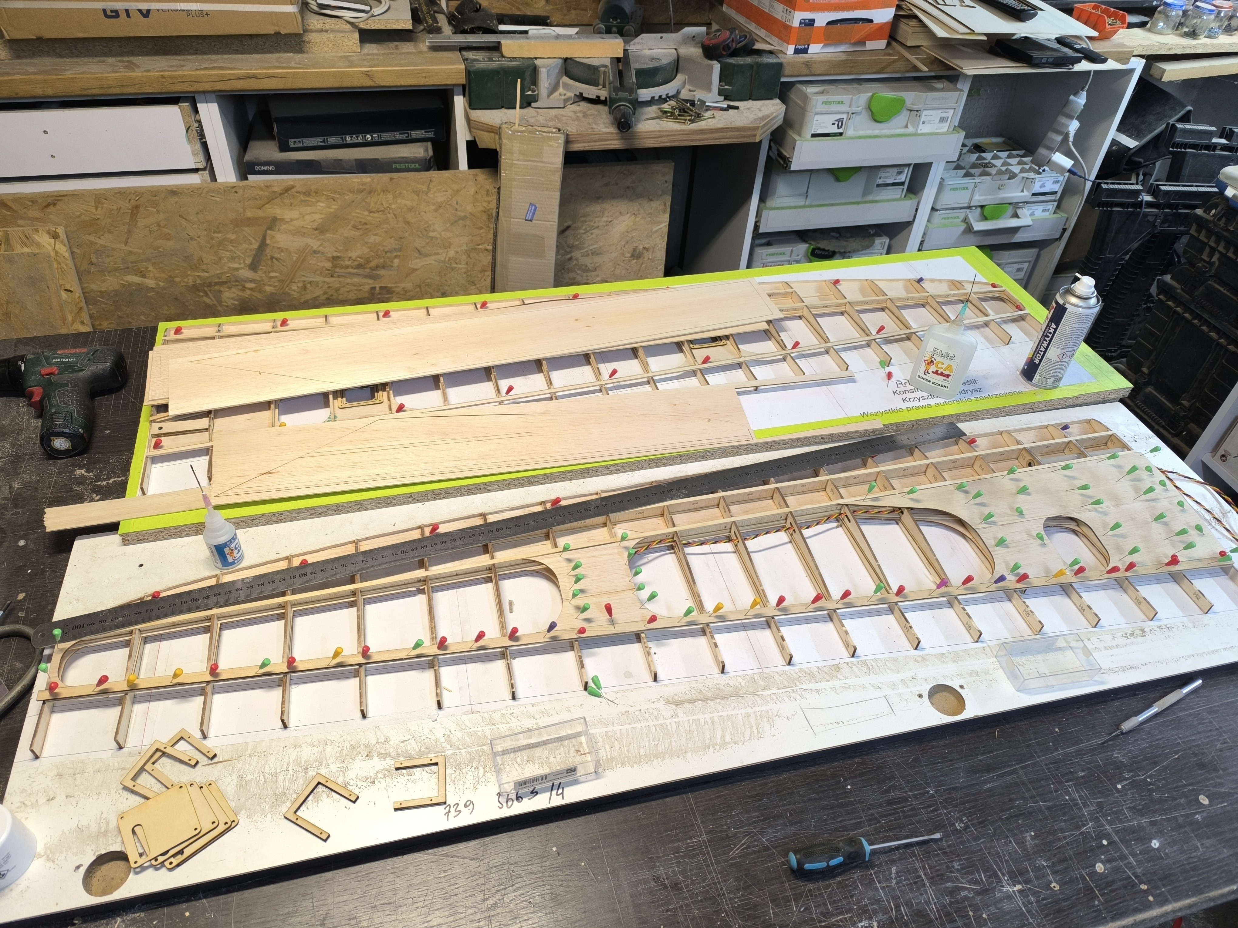 krzysiek.riese Opublikowano 17 godzin temu Autor Opublikowano 17 godzin temu Dzisiaj udało się jedno skrzydło zamknąć. Narysowałem, wyciołem i wkleiłem na żywicy z mikrobalonem wzmocnienia pod kołki mocujące skrzydło od strony natarcia. Następnie wkleiłem Górne pokrycie. Jutro drugie skrzydło i powoli zbliżamy się do końca. 1
