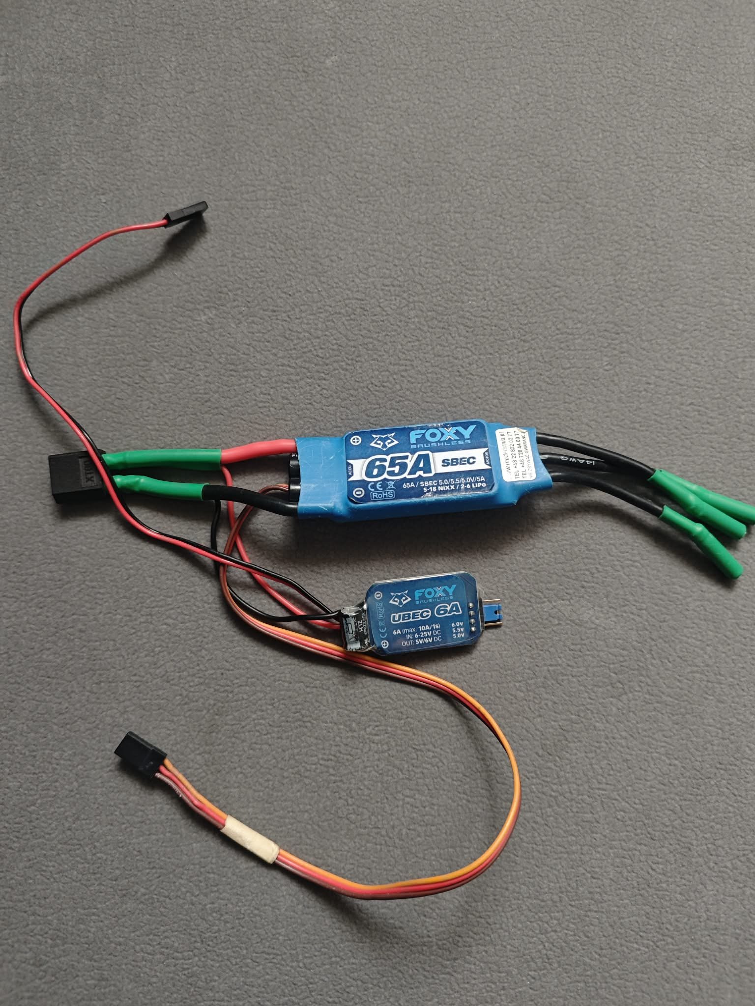 Wojtan Opublikowano 10 godzin temu Opublikowano 10 godzin temu Sprzedam co następuje: 1. Silnik Foxy C4025/16, 385kV, 1100W, średnica 49mm, waga 330g - 250zł (goglarka podsuwa to jako następcę, jako że nie ma go już w produkcji: https://rc-team.pl/silniki/96004-silnik-bezszczotkowy-brushless-motor-g2-c4125-400-009088.html ) 2. Regiel Foxy 65A, z UBEC 6A - 150 zł Nieużywane, nie doczekały się odpowiedniego modelu. Ceny z wysyłką paczkomatem.