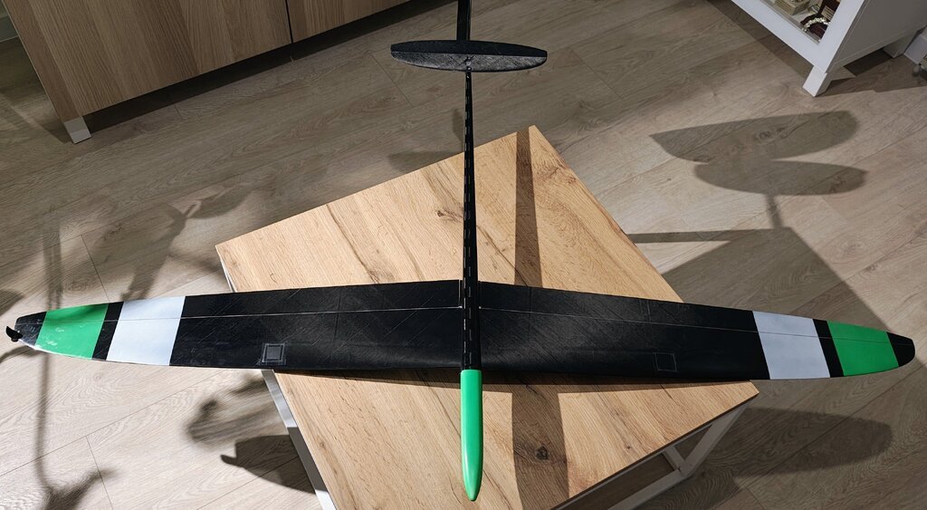 Na sprzedaż model szybowca F3K Vortex 4 w wersji strong (dodatkowo wzmocniony), masa do lotu ~267 g