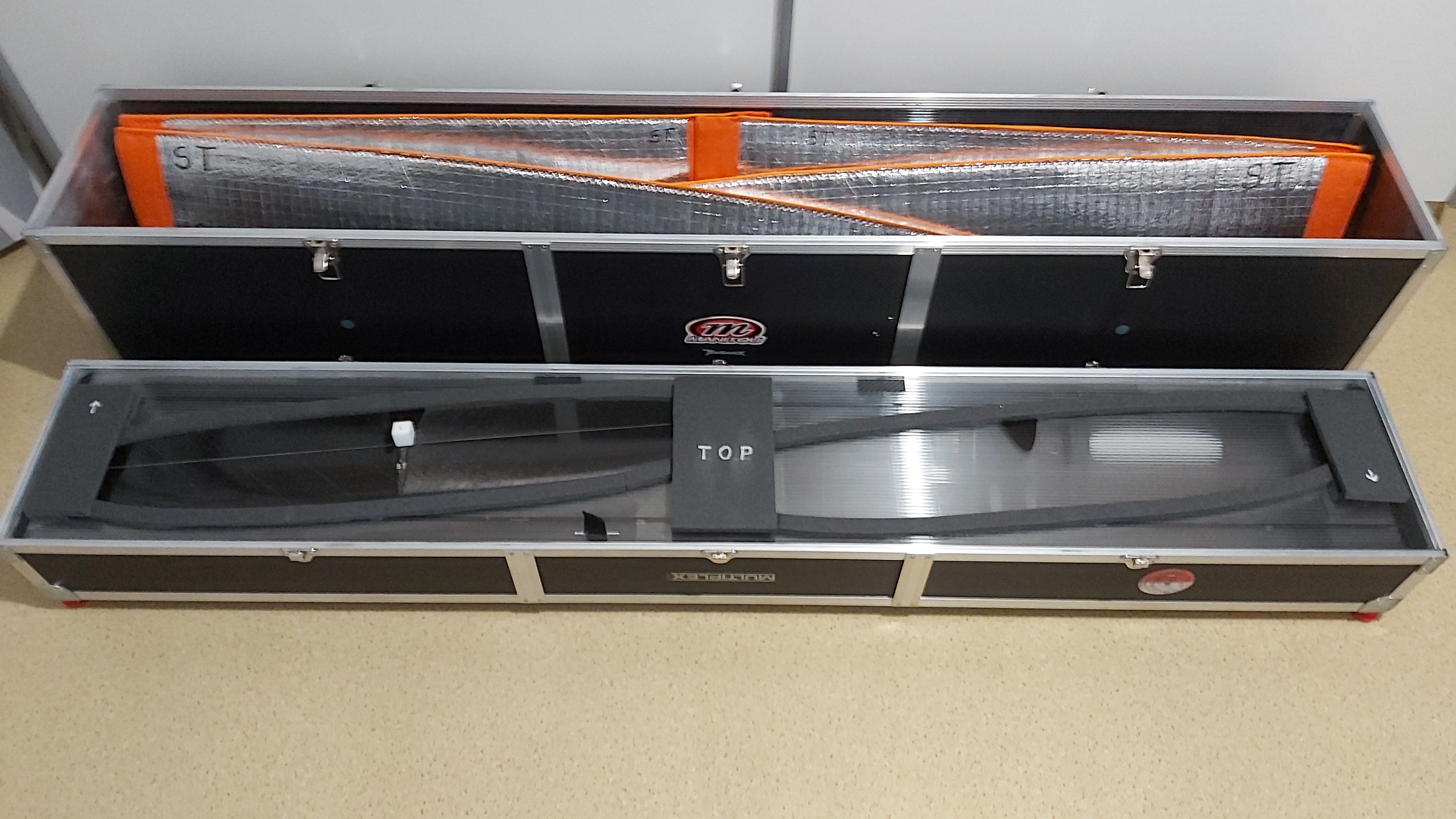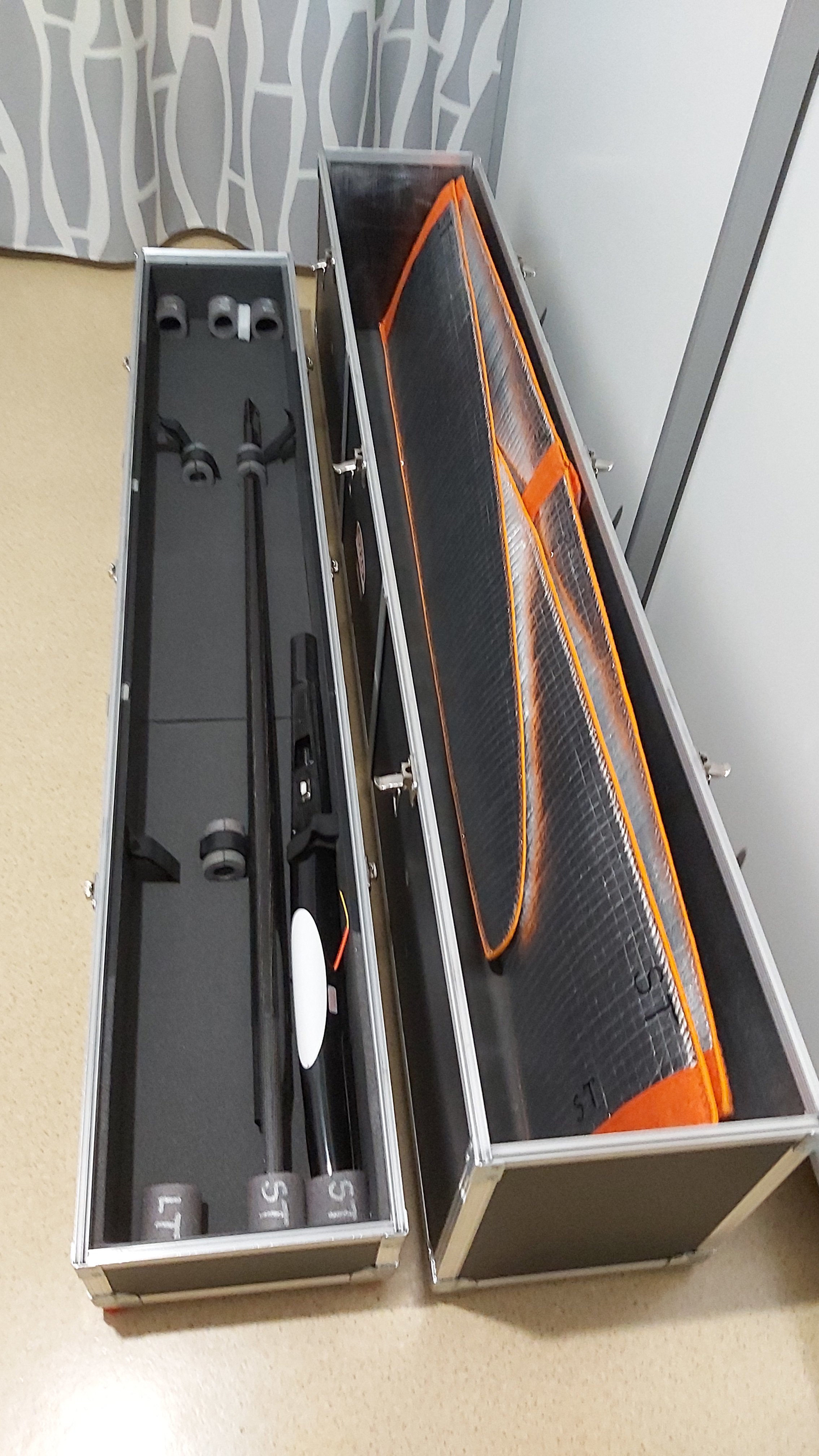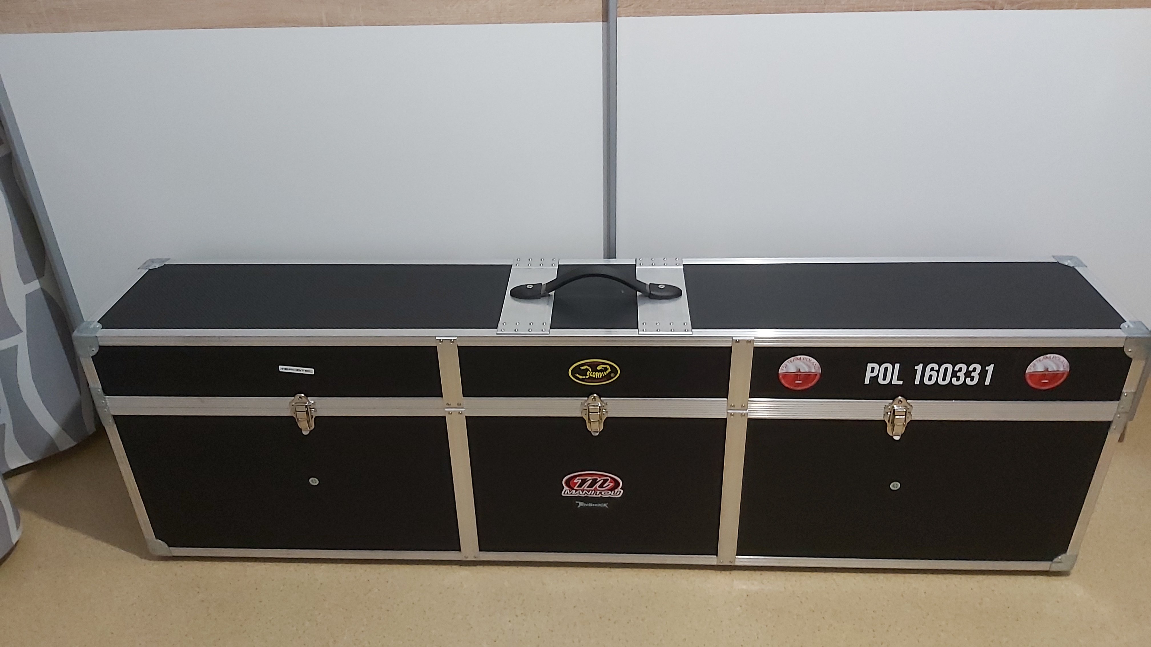 Ryszard_I Opublikowano 16 godzin temu Opublikowano 16 godzin temu Skrzynia wykonana z poliwęglanu komorowego oraz profili aluminiowych. Wymiary zewnętrze: długość 155,5 cm, wysokość 45cm, szerokość 25cm. Oklejona folią imitującą tkaninę węglową. Starannie i solidnie wykonana służyła mi do transportu trzech modeli F5J Vertigo. W górnej części skrzyni czyli w wieku mieszczą się trzy kadłuby oraz cztery stateczniki poziome. W dolnej części mieszczą się trzy komplety skrzydeł oraz stateczniki pionowe. Skrzynia waży około 9kg. Cena 700zł do lekkiej negocjacji.