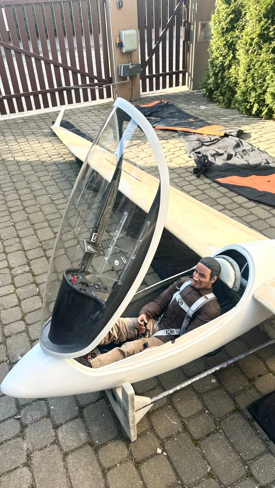 Konrad CAT Opublikowano Czwartek o 16:02 Opublikowano Czwartek o 16:02 Na sprzedaż imponująca makieta szybowca ASW-27 niemieckiej firmy Rosenthal w skali 1:2. To model klasy giant scale, który mimo swoich gabarytów lata bardzo spokojnie, przewidywalnie i daje dużą pewność w pilotażu. Jest stabilny, nie nerwowy, dobrze zachowuje się w całym zakresie prędkości i pozostawia pilotowi dużo czasu na reakcję. Dużą zaletą modelu jest również łatwe i bezpieczne podejście do lądowania, co przy tej klasie szybowców ma ogromne znaczenie. Parametry Rozpiętość z wingletami prawie 8 m Skala: 1:2 Kadłub: laminat Skrzydła: styro-abachi pokryte tkaniną szklaną Bagnet: węglowy Model gotowy do lotu waży poniżej 25 kg Mechanika skrzydeł Pełna mechanika skrzydeł Klapy napędzane czterema serwami Lotki główne dwoma Niezależne lotki krańcowe, dwoma. Dzięki klapom podejście do lądowania jest łatwe i bezpieczne, a lotki krańcowe umożliwiają bardzo precyzyjne centrowanie kominów. Wyposażenie Podwozie niemieckiej firmy FEMA skala 1:2 Koło Ø 18 cm Hamulec koła Laminatowy błotnik Hamulce aerodynamiczne o długości około 75 cm, bardzo skuteczne Makietowo zabudowana kabina wykonana z dbałością o szczegóły Osłona kabiny otwierana na zawiasie z siłownikiem gazowym firmy Pichler w skali 1:2 Na kabinę uszyty srebrny pokrowiec firmy REVOC odbijający promienie słoneczne, chroniący plexi przed nagrzewaniem i zarysowaniami Pilot Alex Pilotenpuppe w skali 1:2 (bez pilota cena 300€ mniejsza) Pokrowce transportowe firmy REVOC Laminatowe winglety o wysokości około 30 cm Elektronika Instalacja pod 16 serw Większość to wysokiej klasy serwa Graupner C4421 Gniazda z pokrywkami Multiplex Dźwignie aluminiowe Na sterze wysokości zastosowano dwa wysokiej klasy serwa cyfrowe Zainstalowany manager zasilania Odbiornik z podwójnym zasilaniem oraz dwoma satelitami Dodatkowo zastosowano niezależny odbiornik wraz z osobnym zasilaniem serw podwozia i hamulca, czyli elementów najbardziej obciążonych. Rozwiązanie to zwiększa bezpieczeństwo oraz niezawodność całego systemu. Właściwości lotne Model jest spokojny i bardzo przewidywalny w pilotażu Nie jest nerwowy i pozostawia dużo czasu na reakcję Posiada bardzo niską prędkość minimalną Znacznie ułatwia to podejście i lądowanie mimo dużych gabarytów Dzięki rozpiętości 7,5 m model jest doskonale widoczny w powietrzu i praktycznie niemożliwe jest zgubienie go na niebie Transport i logistyka Pozostało wykonanie podziału jednego płata, aby jeszcze bardziej ułatwić logistykę transportu modelu. Po podziale płaty zrównają się długością z kadłubem. Długość kadłuba ze zdemontowanym sterem wysokości wynosi około 3,10 m. Ster wysokości posiada bardzo prosty i szybki system demontażu, co dodatkowo ułatwia transport. Stan Model nie miał katastrofy Przygotowany częściowo pod lakierowanie Do wykonania Podział jednego płata Wymiana bagnetu z aluminium na węglowy W zestawie Bagnet z pochwami do wykonania podziału skrzydła Drugi bagnet węglowy z pochwami łączący płaty Niezbędne elementy do ukonczenia modelu. Cena: 2500 € Kontakt: 666 66 93 93