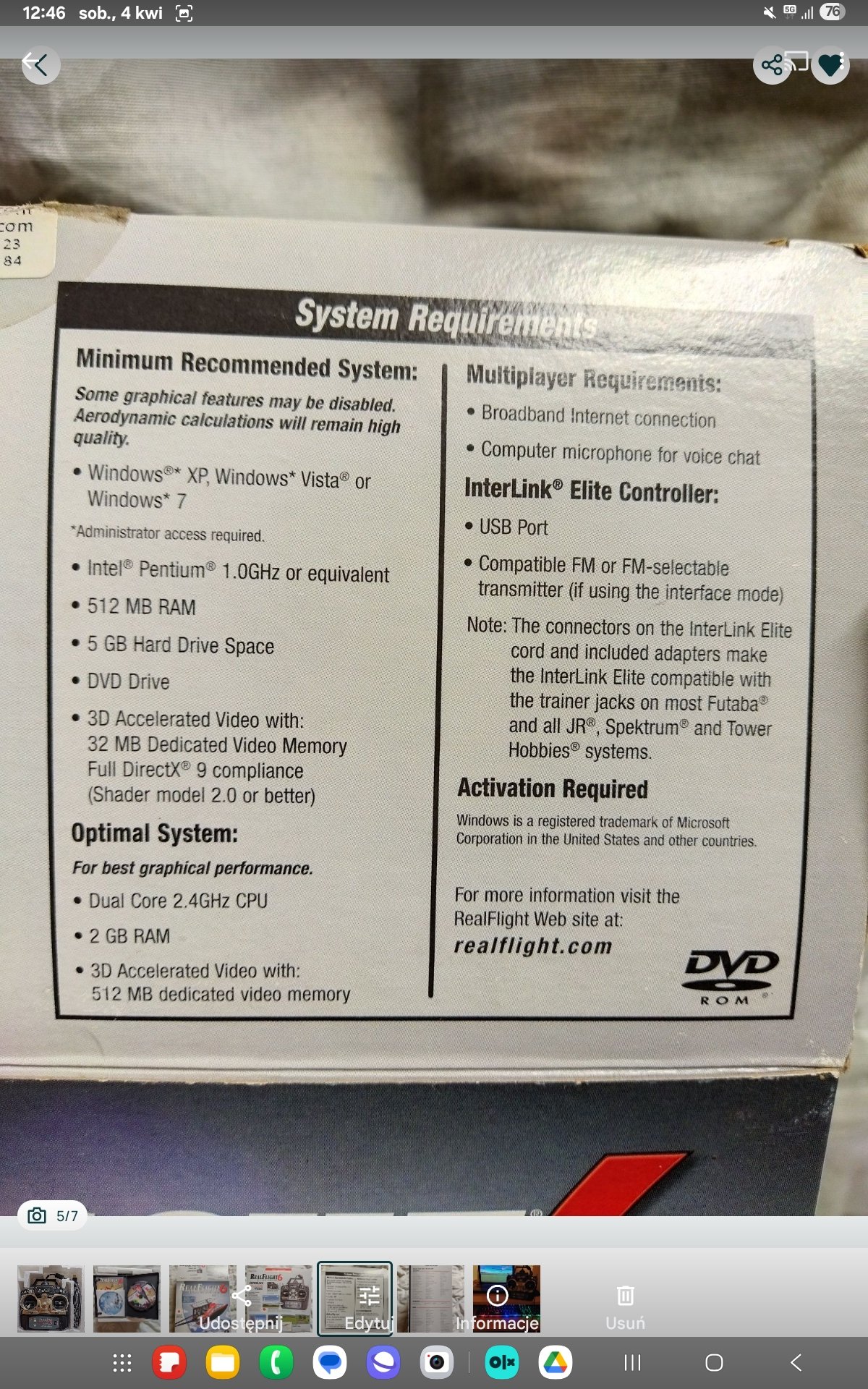 samolocik Opublikowano 8 godzin temu Opublikowano 8 godzin temu Cześć, mam Real Flighta w tej wersji: https://nastik.pl/produkt/realflight-trainer-edition-rc-nadajnik-slt6/ latam samolotami i chodzi mi to ładnie na laptopie poleasingowym: HP Elitebook 840 G5, Win11 Pro, RAM 16GB, Intel(R) Core(TM) i5-8350U CPU @ 1.70GHz, 1.896 Mhz, 4 Core(s), 8 Logical Processor(s) Tutaj podobny do tego, co mam: https://amso.pl/product-pol-273393-HP-EliteBook-830-G5-i5-8350U-16GB-256GB-SSD-1920x1080-Klasa-A-Windows-11-Professional.html Aha, ten laptop nie ma napędu CD, ale RealFlight-a instaluje się poprzez platformę do gier. Przynajmniej w tej wersji, którą mam. [edit] zapomniałbym, latanie na małym ekranie laptopa jest słabe. Przydałby się jako ekran spory monitor lub telewizor.