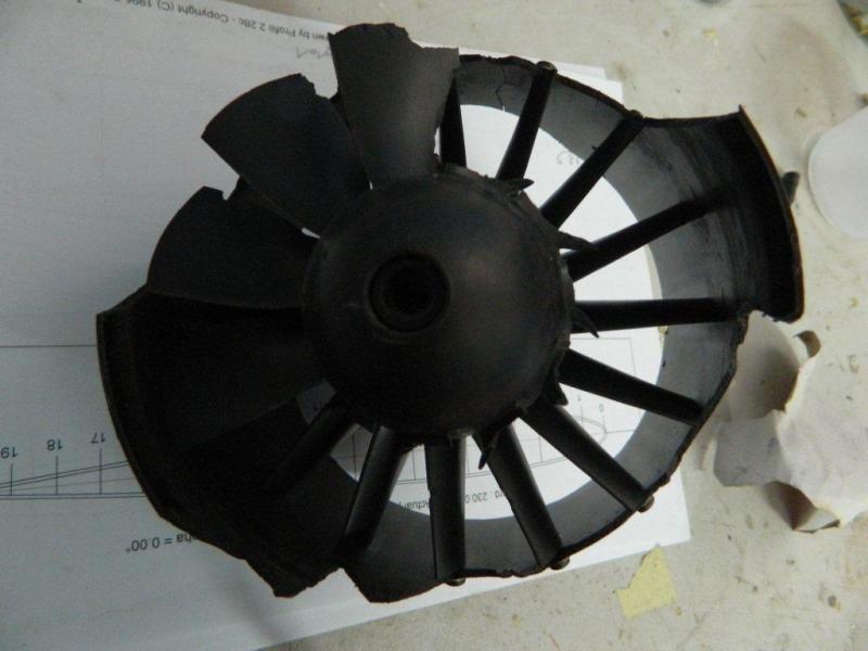 paulusr Opublikowano 6 Stycznia 2012 Opublikowano 6 Stycznia 2012 Kalkulator w łapkę,parę cyferek i okazuje się że turbinka kręciła się 58600 obr/min.Co najmniej o 6500 za szybko i materiał zaczął się rozciągać.Jutro znowu rozmontowanie ,powtórne ważenie.Mhm ... Jak to policzyłeś? 58600 obr/min. to dużo... Na oko jakieś 1.5-1.8 kWNie da się wyważyć rotorka na wyważarce do smigieł itp. Szczególnie pod taaaakie obroty Potrzebne jest jednak wyważanie dynamiczne. Potwierdzają to "nowe rotory" z Wemoteca i Vasy. Chodzą jak trzeba. Za 17 Euro można kupić rotor od mini fan Pro - skończą się problemy z łożyskami. Gruby wał nie zawsze jest rozwiązaniem :wink: a miałem ciekawy przypadek z C/S czterołopatowym: W około 75% gazu - ciąg niecałe 1200g, ale po dołożeniu 100% ciąg spadł do około 900g. I to jest chyba przeciągnięcie łopatek wentylatora.. (Na silnikach odrzutowych, przeciągnięcie łopatek sprężarki to nic innego jak pompaż. A wtym przypadku..? :mrgreen: )Co do sprawności takiej turbiny to nie zależy ona tylko od kąta łopat - Prawidłowy wlot powietrza to 90 % sukcesu. Inny jest pierścień wlotowy dla małych mocy a inny dla dużych (coraz bardziej ostry). Powodu spadku ciągu doszukiwałbym się jednak gdzie indziej. I jeszcze jedno. Co to za modele które potrzebują turbinek "High Speed". To znaczy że zwykłe są za wolne? Czy 200 -300 km/h strumienia to za mało? Wydaje mi się, że jest to zwykły chłyt martekingowy. Na pakiecie 4 s z turbinką Minifan, silnik 600W (inrunner) prędkość (z kalkulatora ) to ~220km/h.