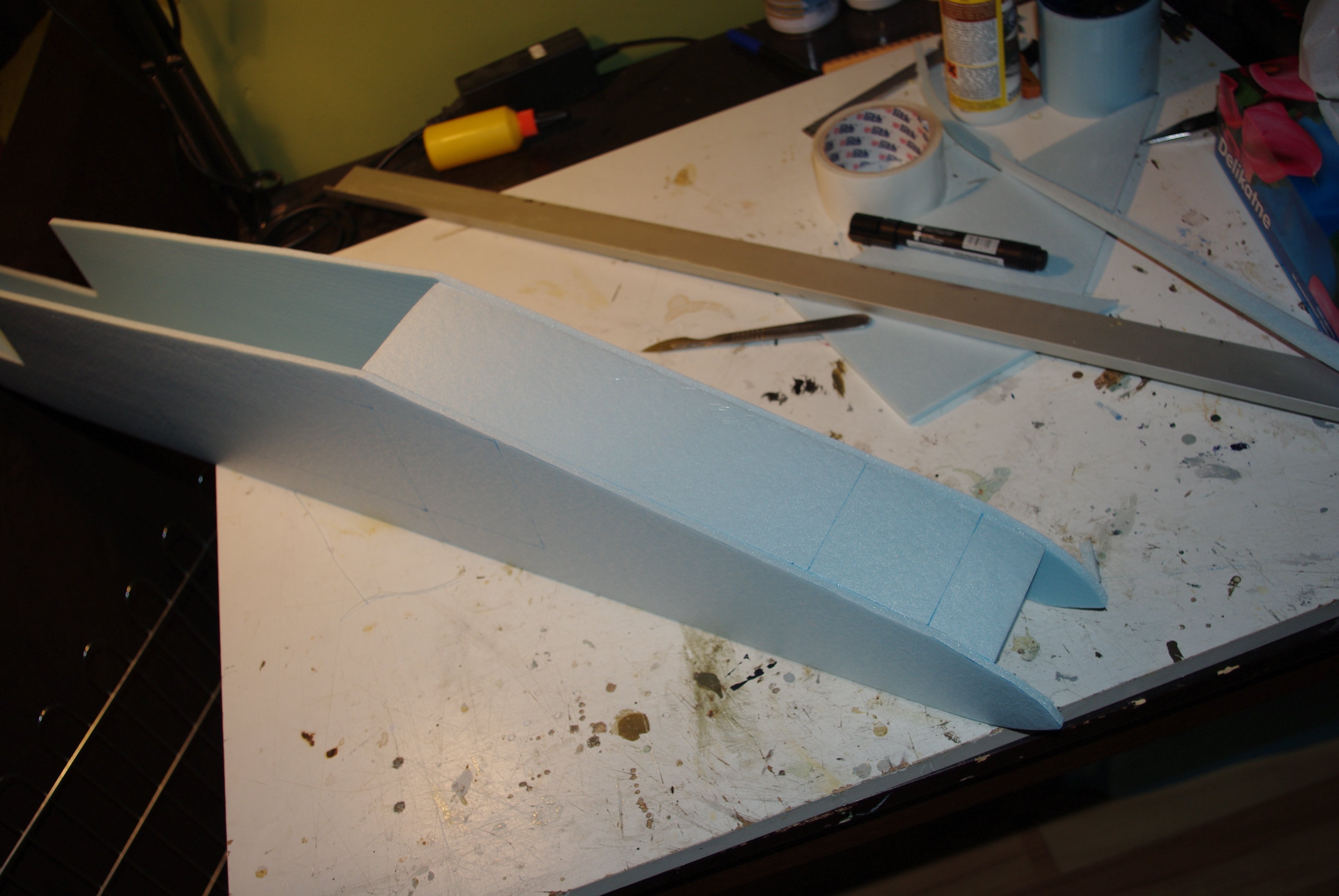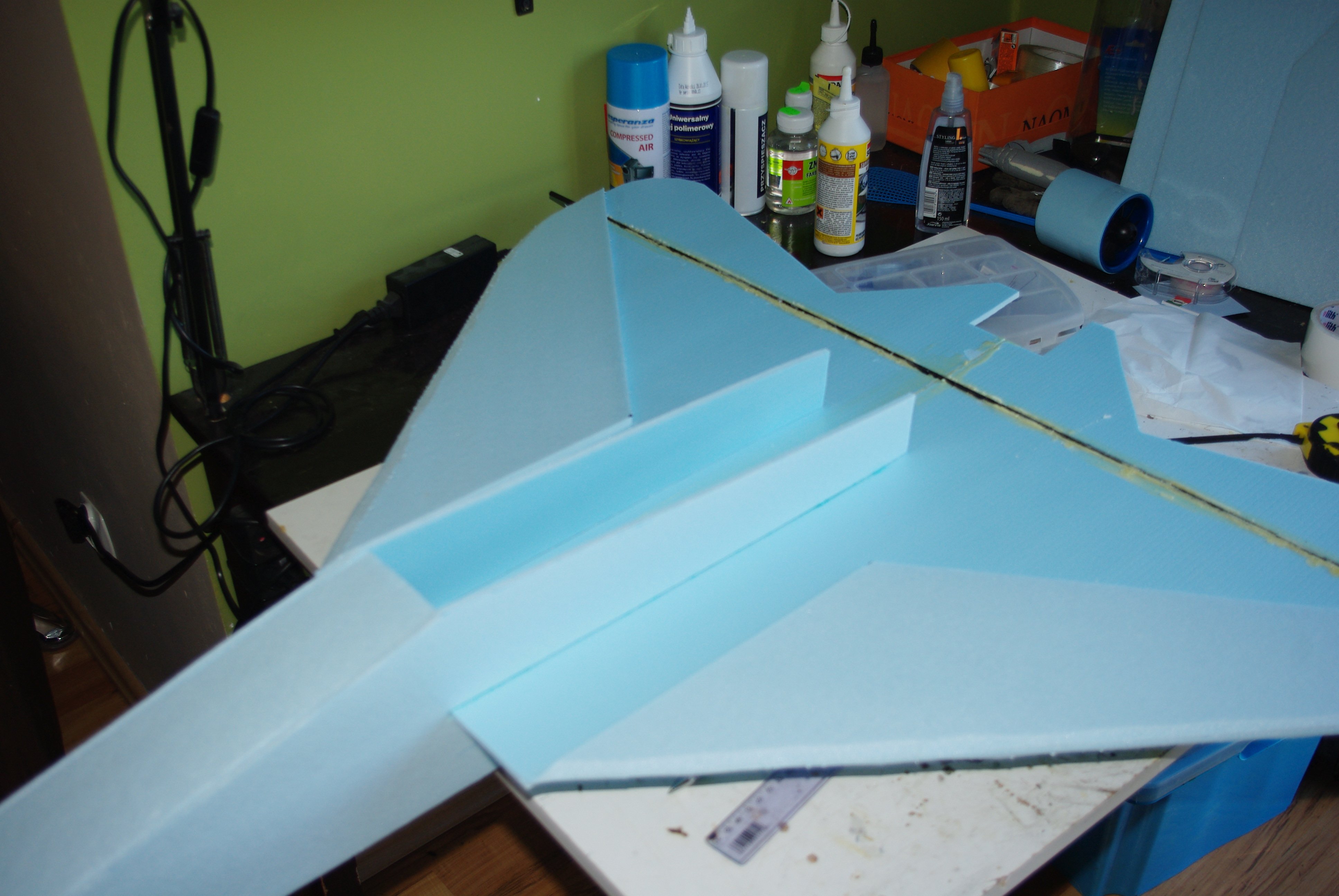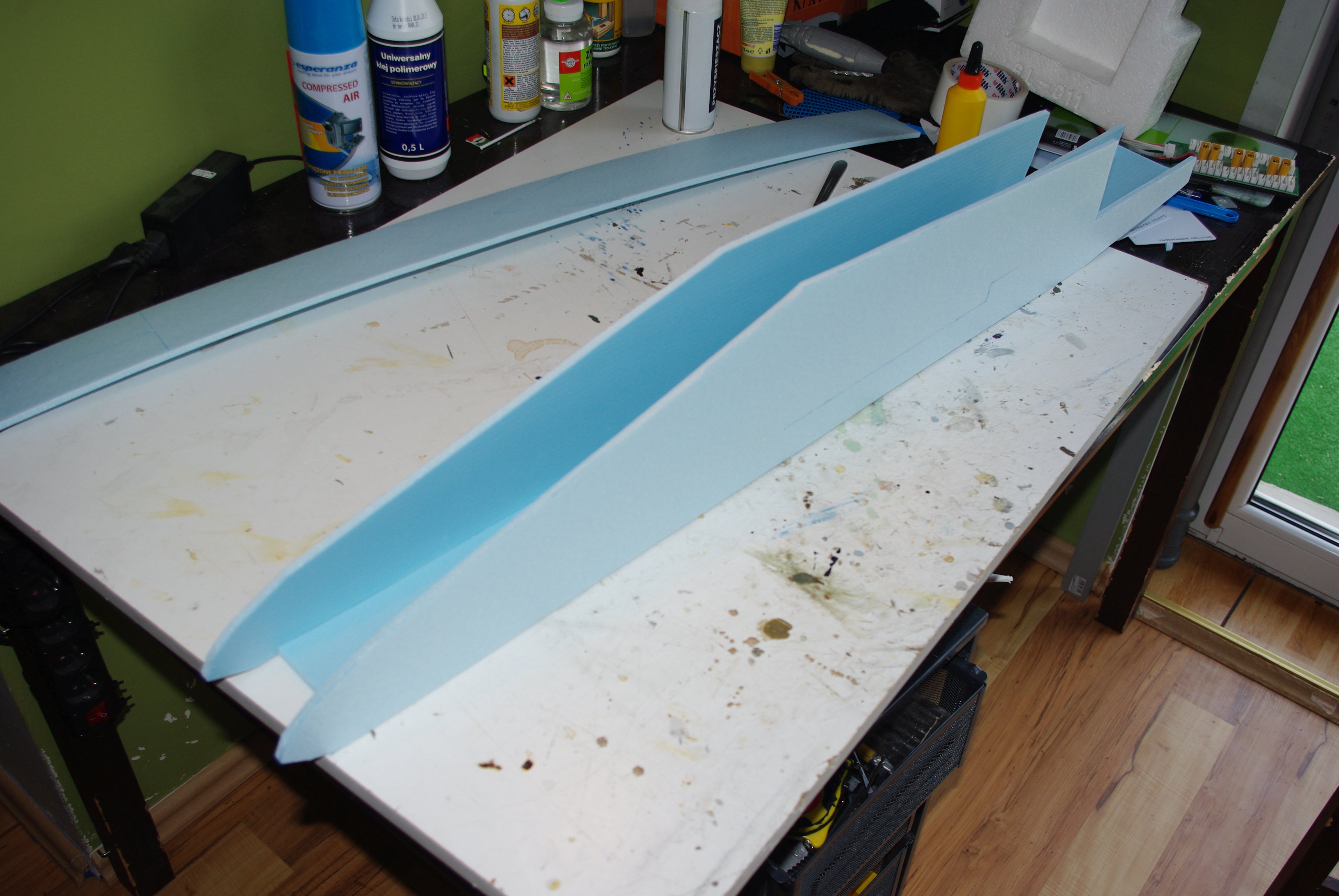 robertus Opublikowano 2 Września 2013 Autor Opublikowano 2 Września 2013 Model rozwinąłem, elementy wyciąłem i zacząłem kleić Przypominam, że robię platformę testową Będzie kanciasta, brzydka i szybka do zrobienia i zepsucia. Kadłub Skrzydło kfm-2 Nie przycinałem nawet 1m węgla. Rozpiętość 92cm