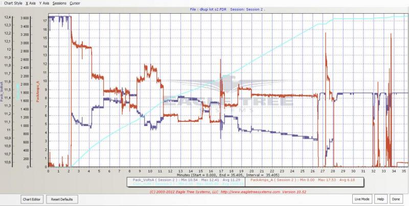 obsydian1000 Opublikowano 8 Czerwca 2014 Autor Opublikowano 8 Czerwca 2014 zużycie energii tego samolotu. samolot leciał oczywiście z wszelkimi "niepotrzebnymi" bajerami (3 osiowy gimbal światła hamulec itd. na pokładzie było 12000 mAh. jutro pokaże inne parametru.