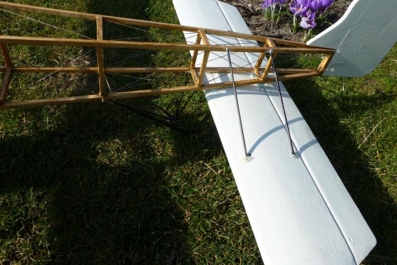 zbjanik Opublikowano 17 Listopada 2013 Opublikowano 17 Listopada 2013 Posłużyłem się tytułem z inego, nie mniej niż nasze, popularnego forum, bo obiekt mojego zamierzenia jest wałkowny dość często- ale trudno- temat chodzi (lata?) za mną od dawna. Tytuł mógłby też brzmieć: "Bleriot- trend setter", bo to fakt; powtórzę za Wiesławem Shierem- ta maszyna wyznaczyła standard dla samolotów na już więcej niż 100 lat i ta koncepcja ma się dobrze (nie umniejszając tu niczego równolegle powstającym kaczkom, bezogonom itp.). Określił więc układ aerodynamiczny, układ sterowania, docenił rolę solidnego, amortyzowanego podwozia, nie siląc się (zostawiając wybór ciągle aktualny), czy średnioplat, czy górnopłat- każdy może sobie wybrać (no, nie był dolnopłatem). Generalnie był to udany prognostyk "co samolot ma mieć". Ta relacja mogłaby znaleźć się także w innych działach: modele średniej wielkości, częścowo nawet w makietach, ale makietach "z daleka", bo mój Bleriot ma być wierny oryginałowi tylko w locie, z pewnej odległości.- więc sylwetka, wznios itd. (przy okazji- fizyczny ból u mnie wywołują całkiem starannie wykonane makiety, z masą nawet szczegółów, ale z zerowym wzniosem- Wilgi, a nawet o zgrozo- Spitfire- to powinno być karalne!). Wierny też pod względem własności lotnych i "podobny dynamicznie"- czyli być jak oryginał- slow flyerem. Widziałem w locie replikę samolotu- wrażenie spotęgowane porównaniem z innymi samolotami (zaraz po nim leciał Mustang i Corsair- pokazy w Kirchhaim a. Teck pare lat temu) było takie że jakby ledwo co leciał. Taki też zamierzam osiągnąc efekt. Rozpietość 1500 mm, konstrukcja głównie depron, ale też balsa, sosna, bambusowe patyczki do szaszłyków, nici itd. Z wagą będę celował tak poniżej 900 g, ale może uda się i mniej. Przy tej wadze powinien wystarczyć jakiś przeciętny dzwonek do zapewnienia lotu- nie przewiduję oczywiście żadnych zawisów na śmigle. Zacząłem od kółek- muszą mieć, to jasne, szprychy- posłużyłem się rurą rynnową do wykonania felg, cieńszą, też z PCV, do instalacji wodnej, na piasty, szprychy zaś są z bambusa. Opony z okrągłej uszczelki ze spienionego chyba poliuretanu. Pierwotnie zamierzałem wykonać jakieś oprzyrzadowanie do montażu, ale próbnie składając pierwsze koło, ponieważ mniej więcej pasowało- skleiłem go, potem drugie. Nie sa idealne, lekko biją, ale co tam, do tych małych prędkości dadzą radę, a estetycznie- przecież ma być, ale w locie- z daleka. Kratownica kadłuba z balsy 6x6 mm, wypełnienie kadłuba ze styroduru. Płaty z niebieskiego depronu z Castoramy. Na razie mam tyle co na fotkach.