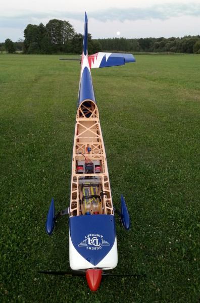 choina Opublikowano 8 Marca 2014 Autor Opublikowano 8 Marca 2014 Robię,robię małe zmiany planów, które założyłem na początku. Kierunek jednak bez pull pulla, serwo wylądowało z tyłu kadłuba, jak dla mnie rozwiązanie szybsze i wygodniejsze. Latałem tak extrą z Top Model i było ok. Mam nadzieje, ze w tym modelu serwo sobie również poradzi. Dźwignia na serwie 2 cale ale założyłem popychacz na otwór 1,75, żeby nie dobijać tego serwa zbyt mocno. Mam nadzieje, że z wyważeniem nie będzie problemu bo za linki nie chcę mi się brać, nie cierpie ich zakładać Druga zmiana to taka, ze nie będzie mufflerów---->> będzie rezonans Powinien przyjechać do mnie na początku przyszłego tygodnia. Jak będzie na miejscu to oczywiście, że sie pochwale. Jak na razie zająłem się centralną częścią kadłuba, czyli centralą zarządzania prądem. Tu zgodnie z planem Power Box competition z jednym odbiornikiem ale za to z dwoma pakietami Li Pol Robbe 2700 mAh 2s. W planach były inne ale takie sie trafiły to takie są. Zastąpią dobrze już wyeksploatowane pakiety Turningy nano tech 3300, którym to pojemność bardzo się skurczyła po dwóch sezonach Ta srebrna półeczka została wstawiona bo jakoś nie miałem zaufania do konstrukcji tunelu na którym miał by być przykręcony powerbox. Udało mi sie również upchać pod nią część kabelków od serw. Pakiety też szykuję w to miejsce, ale może być sytuacja, że będę musiał z nimi uciekać bardziej do przodu. Zbiorniki złożone, końcówki rurek zalutowałem, żeby przewód się nie zsuwał. Ostatnio tego nie zrobiłem i musiałem wyciągać zbiornik z modelu i go rozkręcac, żeby to poprawić. Kadłub otworzony w celu zapewnienia dobrego chłodzenia rur rezonansowych. Przewody od lotek wpinane w kadłub na MPX, tak jak wysokość. No i tyle, na razie....
