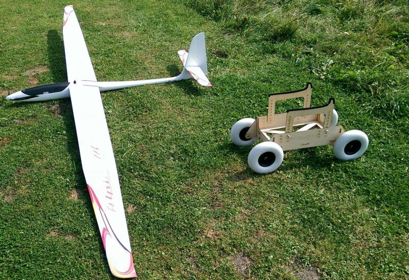 Depesz Opublikowano 23 Stycznia 2014 Opublikowano 23 Stycznia 2014 W przerwie w pracach nad dużym wodno samolotem powstał projekt, o którym od jakiegoś czasu z Mietkiem debatowaliśmy. A że Mietek słów na wiatr nie rzuca, nie przespał kilku nocy i z pracowni wyjechało taki cóś: Wózek będzie man służył do tego rocznego oblotu całkiem sporego Komara i jeszcze większego Nietoperza. Oba te szybowce będą miały opcjonalny napęd elektryczny, bo z założenia mają być holowane przez Piperka Pawnee 33%. Zestaw prezentuje się tak: I będzie przeznaczony do samodzielnego montażu (dużo powiedziane, może godzinka max) Zamysł był taki aby pomieścił właściwie każdy model szybowca, a zastosowanie w nim pełne łożyskowanie kół ma zminimalizować opory podczas rozbiegu. Na poniższym zdjęciu widzimy model Krasivo F3E: Model waży ok 3 kg, ale za to na kolejnym już Kobuz o wadze ok 11 kg, dla tego wózka to fraszka: Wózek ma w dużym zakresie regulowaną wysokość, dzięki czemu nie straszne mu spore konstrukcję jak wcześniej wspomniany SZD-6 Nietoperz o rozpiętości 4,5m. Regulowana wysokość daje również możliwość zastosowania sporych śmigieł. Wózek dodatkowo będzie wyposażony w mechaniczny hamulec (niewidoczny na zdjęciach), który po oderwaniu się szybowca skutecznie go zatrzyma (wózek, nie szybowca ;-)), by nie trzeba było za nim "drałować". 2