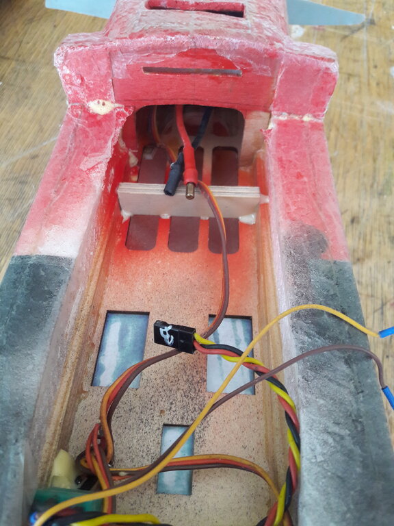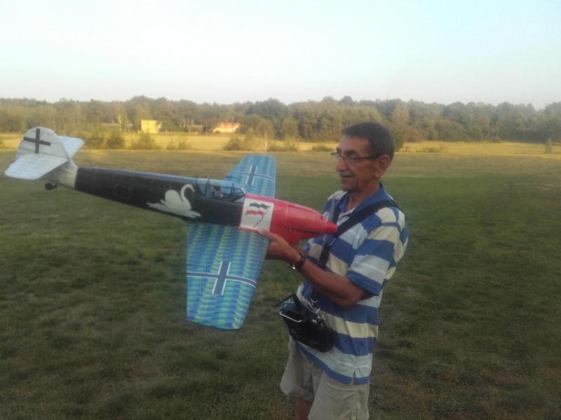 Gość Jerzy Markiton Opublikowano 14 Grudnia 2015 Opublikowano 14 Grudnia 2015 Niewiele tego, ale znów coś do przodu... Kadłub wstępnie obciosany: Przymiarka kabiny: co raz mniej mi się podoba ten kołpak. Nawet po obcięciu noska będzie to sprawiało wrażenie sztucznego ? Jeśli pierwsze loty pokażą, że chłodzenia jest dość - raczej dostanie nowy, większy. Regulator chciałem osadzić w kadłubie "właściwym" Nawet w foli okalającej regulator wyciąłem okienko nad radiatorem w celu lepszego chłodzenia. Miał być zamaskowany i niewidoczny na pierwszy rzut oka... Ale, jak propaguje Czaro: największa pewność to niepewność..... Wstawiłem cały do komory chłodnicy: Komorę, a właściwie jej wnętrze potraktowałem czarnym Humbrolem - potem dostęp będzie już znacznie utrudniony. Chyba za bardzo sobie tego Humbrola rozcieńczyłem - bo wylazł na zewnątrz..... przez pory w EPP. Tzn: spodziewałem się tego, bo wylazł podczas malowania wnętrza komory silnikowej, a właściwie w trakcie jej obciosywania. Ale raz rozcieńczona emalia zagęścić już się nie chce... ?? Ciekawe, co powie na to czerwień nosa ? "Domek" pod nakrętkę mocującą skrzydło skleiłem z części otrzymanych w zestawie i ze zdumieniem odkryłem, że w swoich zapasach nie mam śruby M-4 o dł. 60mm. Ale wtopa !! Mam M-5 ale nakrętkę już wkleiłem M-4..... Nie chce mi się jej wyrywać. Jutro rajd po sklepach w poszukiwaniu długiej M-4. Ze...... się "bida" i płacze... Ale to ma swój urok ? . Żeby mi się wręga (pół wręga, ćwierć wręga ?) mocująca skrzydło nie wkleiła krzywo - zmontowałem całość, wcześniej traktując Soudalem. Miłych snów ! - Jurek