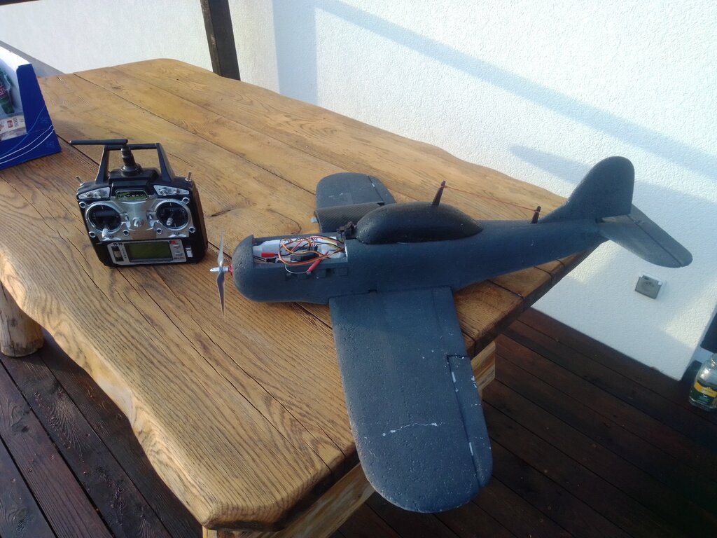 Atomizer Opublikowano 29 Marca 2016 Autor Opublikowano 29 Marca 2016 Samolocik S2 jest już w pełni lotny Nie było łatwo. Ta mała bestia może nie lata jak żuraw ale jak wredny wróbel !!! Jak do tej pory 7 lotów wykonane. Szósta próba, lot ok. 4,5-5min na pakiecie 450mAh cały czas na pełnym gazie, podczas lądowania, że wróbel zwrotny za mocno skręciłem w lewą stronę i prosto w ul pierwszy z rzędy zaliczyłem. Od razu skrzydło złamane (patrz zdjęcie). Jest też filmik jak go zmniejszę to wrzucę. 7 lot zmieniłem jeszcze kąt mocowania skrzydła, przesunąłem troszeczkę pakiet do przodu tak że samolot nie wznosił się już sam do góry podczas lotu tylko latał lotem prostoliniowym. I na tym koniec z ustawieniami i regulacją. Od tej pory samolocik lata poprawnie, nawet udało mi się zrzucić torpedkę nie wiem dlaczego ale nie nagrał się 7 lot na telefonie