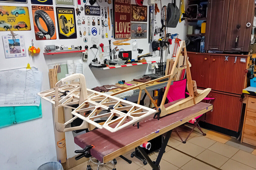 sp2jbs Opublikowano 28 Stycznia 2018 Opublikowano 28 Stycznia 2018 Witam Siedząc w domu w niedzielne popołudnie myśli nie dały co i jak mam rozmieścić w kadłubie.W modelarni zrobiłem bałagan co powinno znaleźć się w środku?. To jak by było sterowanie naciągami, a jak by tak przenieść serwa statecznik wysokości wagę serw wiem jest istotna ŚC wywarze odważnikami .Po zbędne się naciągów za każdym razem ustawianie na lotnisku czas ładnie to wygląda mało praktyczne. Mam model Se5a znam potrzebny czas. Amortyzatory szukam podobne ale na stronach z samochodami nie podają wymiarów i do jakiej wagi a może ja nie tak szukam. Poniedziałek mam zamiar rozrysować wręgi do kadłuba zrobić dostępny do elektroniki. Poproszę o wypowiedzi czy mam dobry kierunek modyfikacji modelu. Pozdrawiam Marian