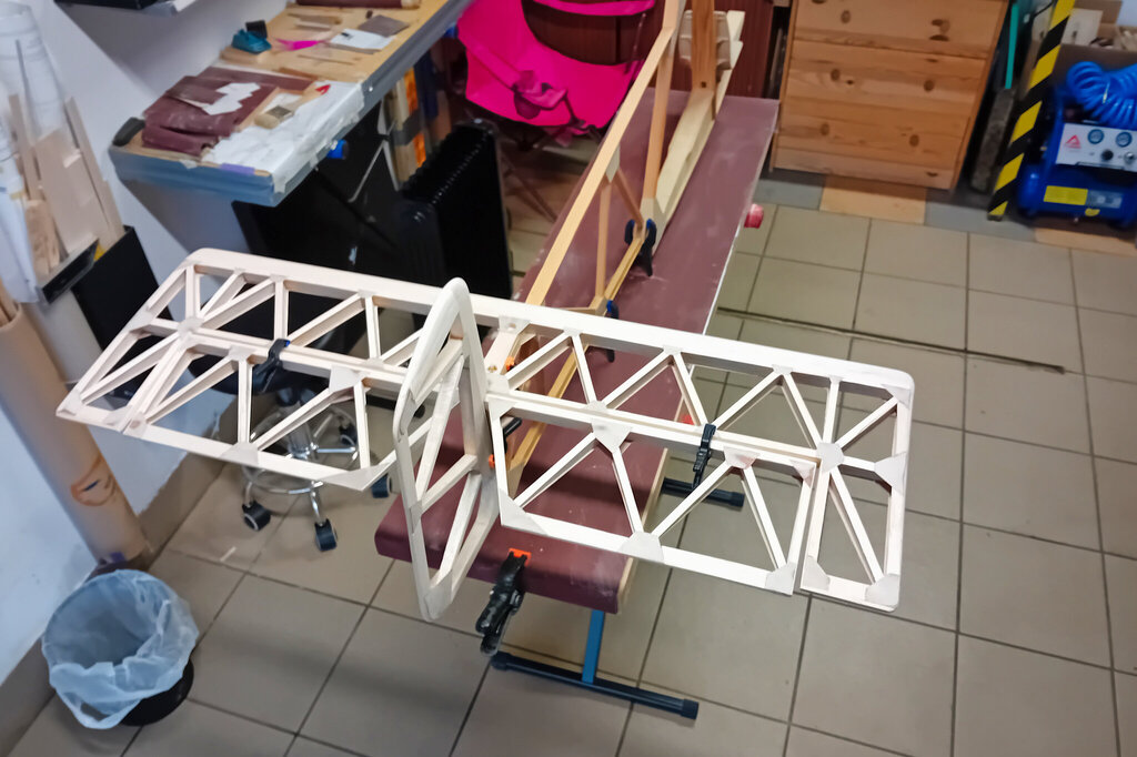 sp2jbs Opublikowano 2 Lutego 2018 Opublikowano 2 Lutego 2018 Witam Wojtku i obserwatorzy mam prośbę o pomoc jaki kąt zaklinowania statecznika poziomego nie mam dokładnych rysunków to co udało pomierzyć to pięć stopni nie jestem jednak do tego przekonany. Kolega Stanisław pożyczył wyrzynarkę szybko zabrałem się do wycięcia formy na płozę. Oj sama płoza ma około jednego metra poszukiwania w modelarni,jest miękka bo balso sklejka planowałem inaczej, ale krawiec kraje i.t.p. Namoczyłem w zimnej wodzie a po czasie w wrzątku ukształtowałem jeden część stębnując jak szewc na kopycie, wysuszyłem opalarką. Następną powtórzyłem identycznie. Po ukształtowaniu części płozy pokleiłem czas na wyschnięcie nie jest za ciepło w modelarni kaloryfer pomorze ogrzać. Ostatnio pisałem o zawiasach statecznika pionowego moje wypociny dnia dzisiejszego sporo materiału poszło do kosza tak wymyśliłem nawet są według mnie dobre,zapewnią sztywność nie są eleganckie powinny być dobre. Czekam na uwagi i inne rozwiązania,płozę pokryję matą za żywicuję doda twardości materiał nie będzie kruchy poślizg na trawie zapewni. Pozdrawiam Marian