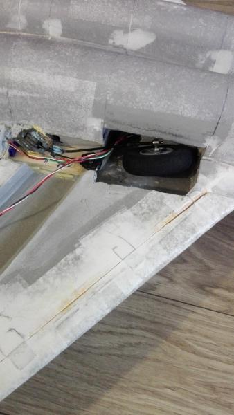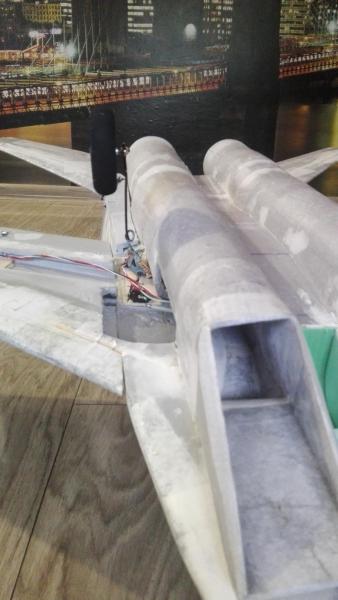 Rawen 75 Opublikowano 7 Stycznia 2018 Autor Opublikowano 7 Stycznia 2018 Kompleks serw umieszczony jest w środku płatowca, według kolejności od tyłu- serwo steru kierunku, serwo klap i slotów, serwo lotek oraz serwo steru wysokości. Nie są wklejone, tylko przykręcone. Całość przekazu biegnie bowdenami wzmocnionymi, puszczonymi w konstrukcji w rowkach, wklejone i wyszpachlowane, także nic nie widać z zewnątrz. Do miejsc przekazu na ster kierunku i sterowania klap-slotów można "dostać się" po usunięciu- wycięciu pokrycia,przy statecznikach od wewnątrz, oraz w skrzydle od spodu, ot takie 2x3cm i gotowe. Serwa o dużej sile, i prawie wszystkie MG, tylko od steru kierunku na plastikach. Mechanizacja skrzydla oparta jest na krzyżaku. Podczas pracy każdy z drutów ciągnie do środka płata, dlatego klapa opuszcza się, a slot schodzi w dół.