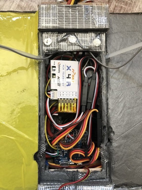 a2j Opublikowano 20 Czerwca 2018 Autor Opublikowano 20 Czerwca 2018 Brak mi tu dżwigaru łączącego połówki skrzydeł ...wiem że w projekcie Flitetest też go niema ale oni stosują troszkę odmienny materiał od podkładów . Najprostrzym w tej chwili rozwiązam\niem było by wklejenie w wycięciu na smigło listewki lub płaskownika węglowego poprowadzonego przed wręgą silnika , długości nie mniejszej jak rozstaw serw . Też mnie to martwi, był plan że wkleję w kadłub dodatkowe wzmocnienie ale zabrakło miejsca. Obie połówki połączone ze sobą przy silniku takim podwójnym boxem (pod regulatorem jest też ścianka) Mam sklejkę 1mm i 2,5mm czy ten materiał nada się na taki dźwigar? Dobrze rozumiem jego rozmieszczenie?