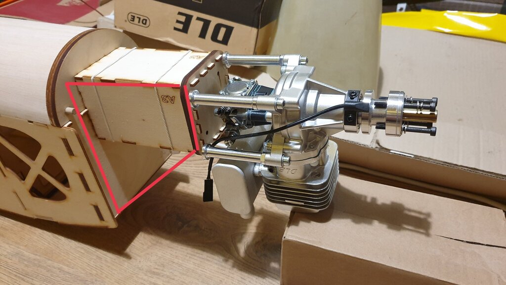 kojot92 Opublikowano 4 Lutego 2023 Autor Opublikowano 4 Lutego 2023 Hej. Postanowiłem, że rezygnuję z domku a silnik mocuję do pierwszej wręgi. Muszę tylko dorobić nowe dłuższe tuleje. Myślę, że powinno być OK. Na razie prowizorycznie zrobiłem je z drewnianych kołków. Następnie przeszlifowałem maskę i wykonałem w niej otwory pod cylinder i piastę. Na górze maski musiałem wyciąć takie fasolki jak na zdjęciach, żeby w ogóle ją jakoś założyć i zdjąć. Otwory zakryję jakimiś przetłoczeniami. W masce zostało jeszcze wykonać otwór pod tłumik. 4