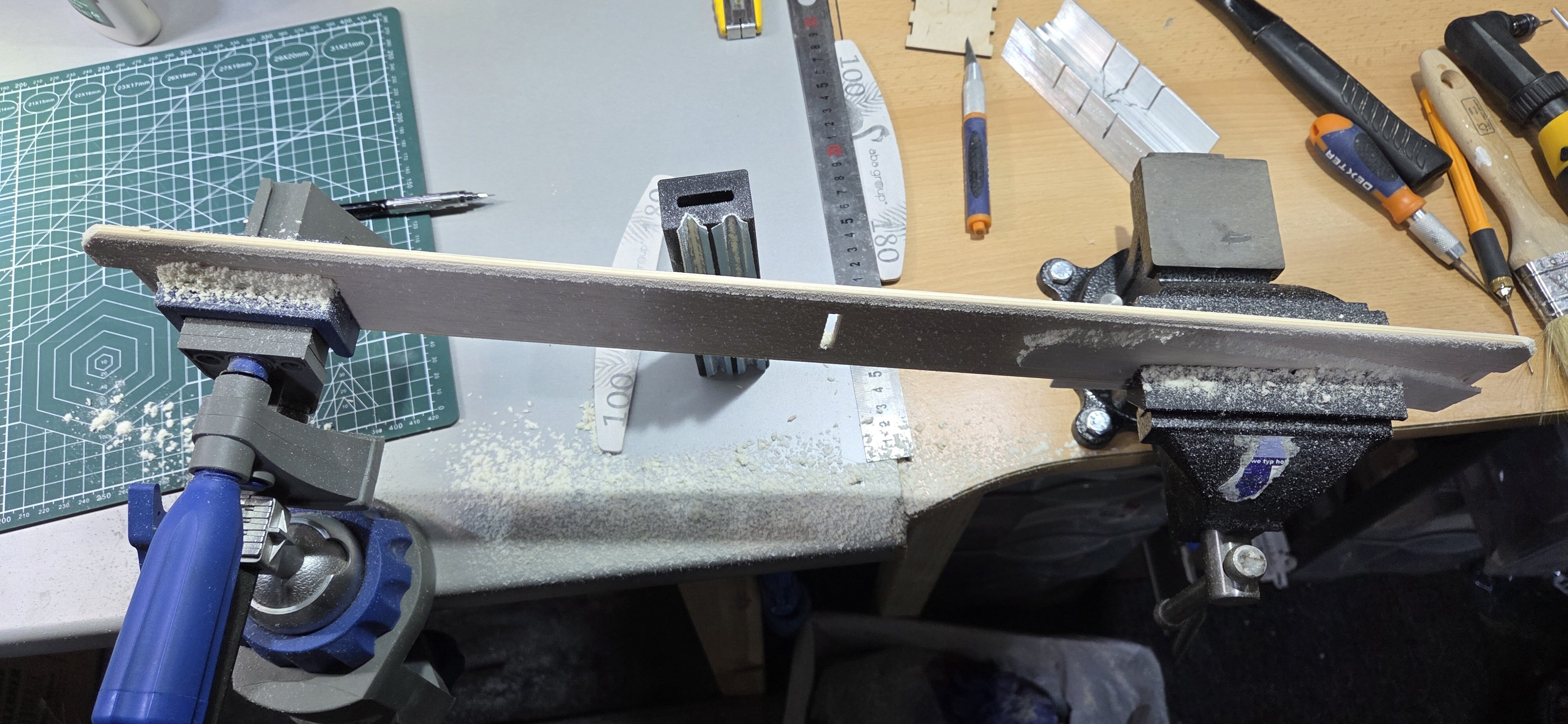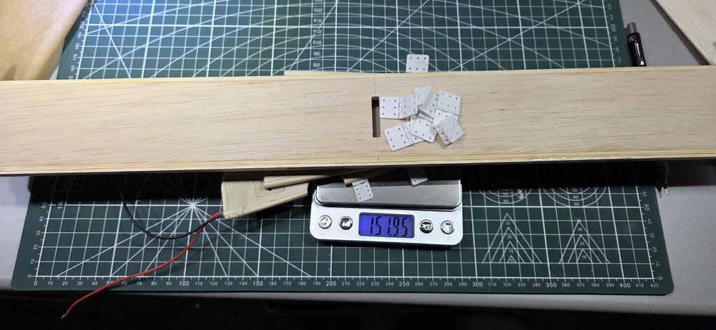 Jeszcze nie ważyłem, trzeba trzoszkę przeszlifować, nadać kształt natarcia i spływu, jak skończę to zważę i się "pochwalę 😉".