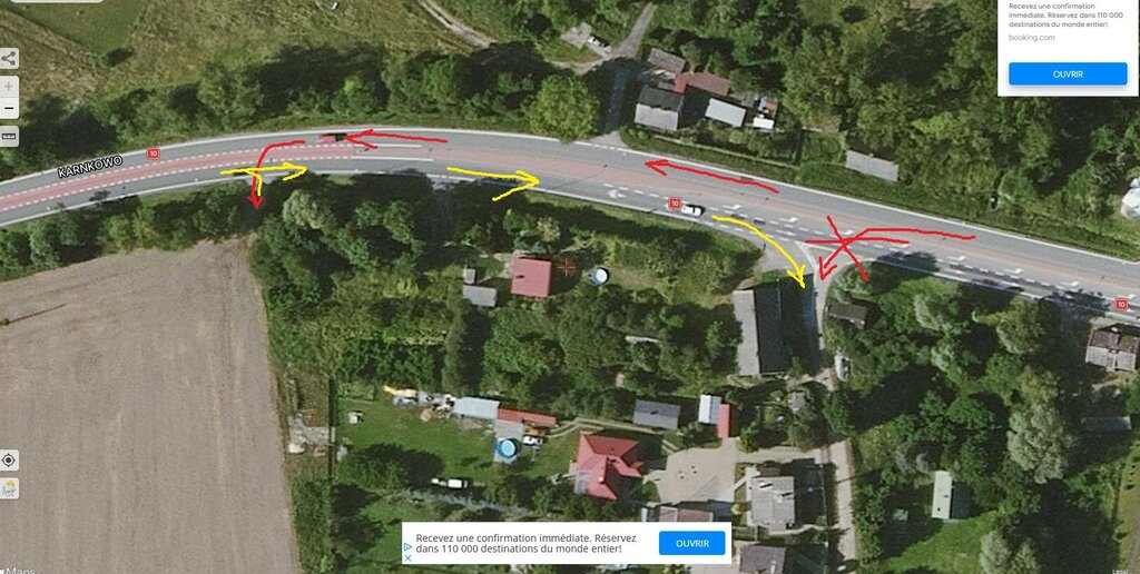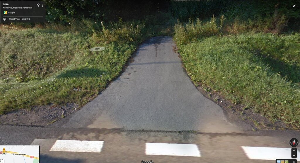 RomanJ4 Opublikowano 27 Czerwca 2022 Opublikowano 27 Czerwca 2022 2 godziny temu, paweln7 napisał: żeby było bezpieczniej na drodze musi zmienić się mentalności i zachowanie ludzi siedzących za kierownicą I drogi najeżone idiotyzmami... Na przykład podam DK10 miejscowość Karnkowo. Po przebudowie drogi pośrodku pasa drogowego w miejscowości walnięto taką (wystającą) wysepkę która uniemożliwia mieszkańcom jadącym od strony Sierpca wjazd w jedną z bocznych ulic. Trzeba jechać dalej do końca wysepki(i miejscowości)by na zakręcie(pod górkę!) wjechać w krótką wyasfaltowana odnogę po to by cofając do tyłu(!) na przeciwnym pasie zawrócić z powrotem do miejscowości. Niektórzy decydują się po prostu przejechać przez wysepkę... Ledwie mieści się tam osobówka, ciężarowym nie ma szans tam zawrócić, trzeba jechać 4 km do pobliskiego Lipna. A tak to wygląda z perspektywy nadjeżdżającego od Lipna samochodu... Taki pomysł mieli konstruktorzy przebudowy tej drogi Jakie to bezpieczne, zwłaszcza przy złej pogodzie to oceńcie sami... Notabene dzieci i piesi z tej bocznej uliczki muszą iść(i chodzą!) do sklepu czy szkoły po wysepce pośrodku pasa albo skrajem jezdni aż do przejścia, bo... z powodu braku miejsca chodnik się tam nie zmieścił... (na starej drodze nie było wysepki, ale chodnik był..)
