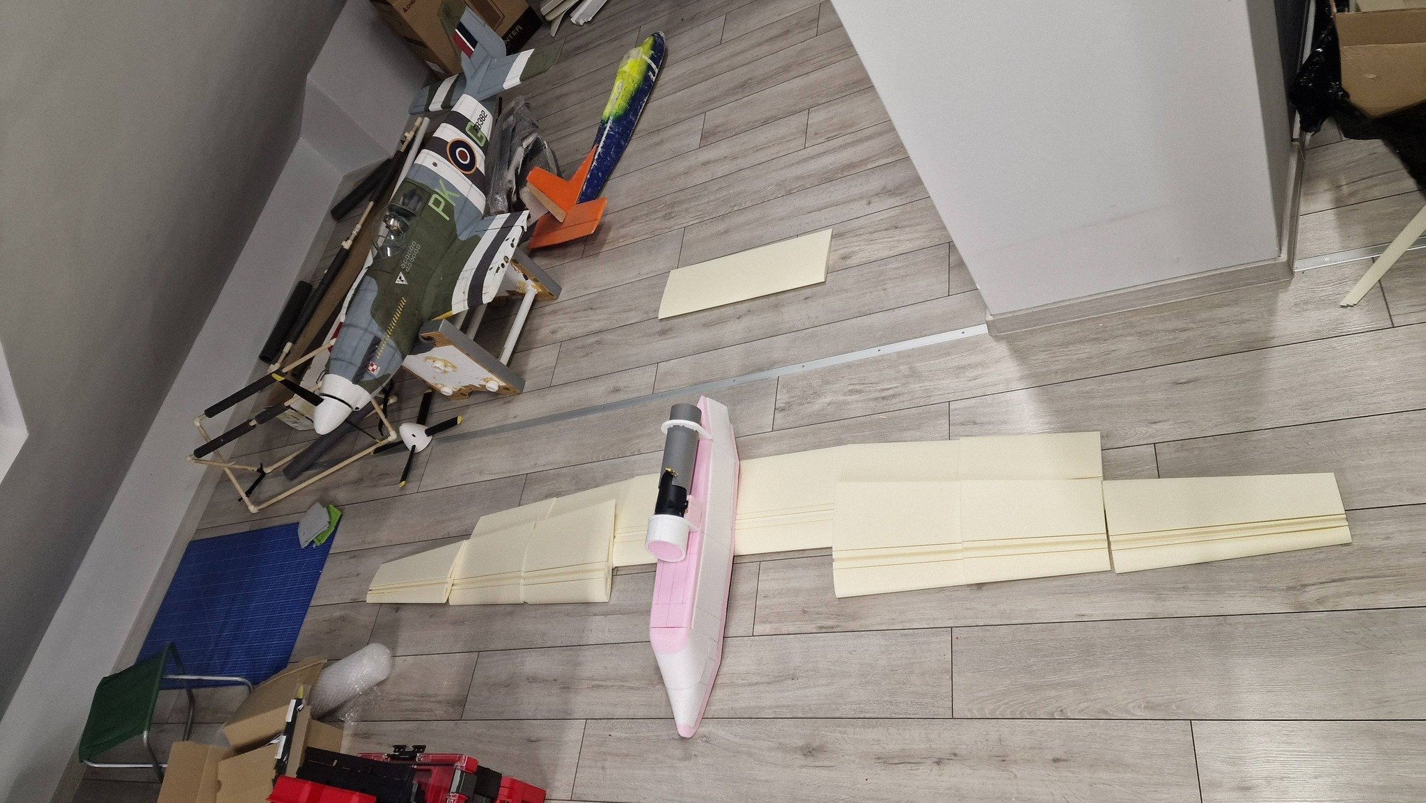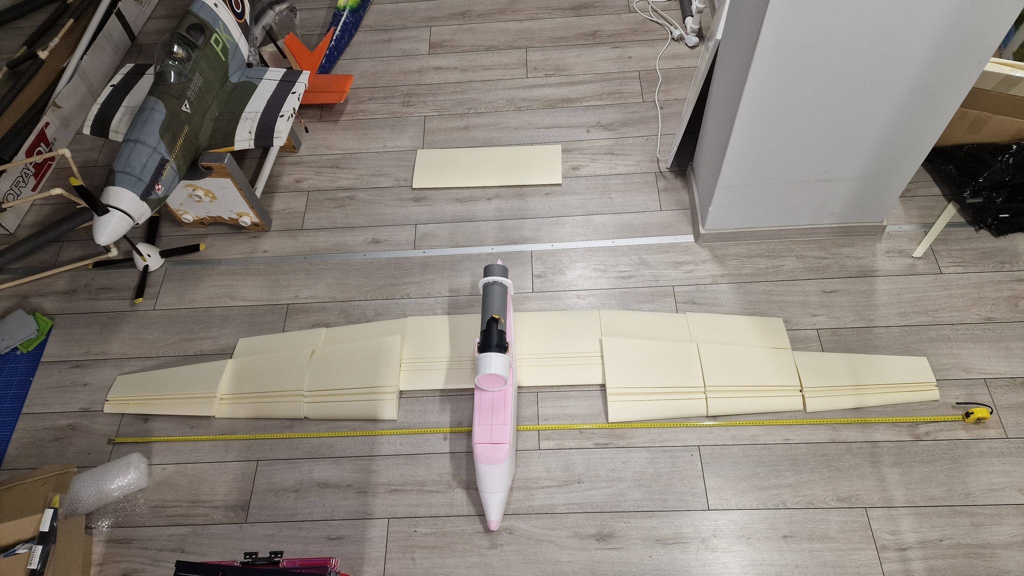 robertus Opublikowano Sobota o 17:47 Autor Opublikowano Sobota o 17:47 M-15 Belfegor dostał skrzydła. Na razie surowe. Zdjęcie przekłamuje ale nie miałem jak objąć tej rozpiętości. Ten luźny kawałek z tyłu to statecznik poziomy. 4