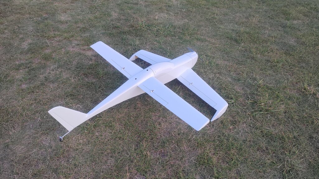 Patryk Sokol Opublikowano 26 Stycznia Autor Opublikowano 26 Stycznia I pchamy to szkaradztwo do przodu: Zmiany niby niewidoczne, ale dosżły powierzchnie sterowe, podwozie jest już całkowicie funkcjonalne (nawet prosto jedzie), skrzydła są już na śrubach (acz jeszcze z możliwością regulacji). Podwozie to w ogóle kupa roboty jak na coś czego nigsdy nie użyję (spodziewam się, że z kapciami z trawy nie pojedzie). Do zrobienia zostało wykończenie krawędzi natarcia (teraz są tylko z grubsza oszlifowane), oszlifowanie kapci na okrągło, zrobienie kształtu kadłuba nad skrzydłem i zrobienia przejścia pionowy-kadłub. W sumie to nie jakoś bardzo dużo roboty. Podjąłem decyzję, że całość okleję Oracoverem Scale, ciekaw jestem jak to będzie wyglądać (bo podobno jest całkowicie nieprześwitująca, a tak to przez białą folię trochę widać co pod spodem). Oczywiście Oracovere'u Scale w Polsce dostępnego nie ma, ale z tym sobie proadzę. Obecnie waży 1230g, czyli całkiem lekko ta buda wyszła. Myślę, że z 300g max dojdzie do konstrukcji (oklejenie, maska, kabinka). Czyli wagowo wychodzi to jakoś tak: 1550g - konstrukcja 80g - 4x KST DS215MG 35g - KST DS515MG 11,5g - odbiornik 30g - regler 315g - silnik Czyli łącznie, bez pakietu 2025g I teraz, na pakiet opcje są dwie - albo 6s1p VTC5a - 300g, albo 6s2p 600g. I ku mojemu zdziwieniu - eCalc twierdzi, że 6s1p się za bardzo nie spoci: https://ecalc.ch/motorcalc.php?ecalc&lang=pl&motornumber=1&dragcalc=0&weight=2025&calc=bat&warea=40&wingspan=1400&elevation=500&airtemp=25&qnh=1013&batteries=sony_us18650vtc5_-_8c/12c&chargestate=0&s=6&p=1&battdisc=0.85&esc=max_100a&timing=1.0&motor=axi&type=1|4120/14_v2²&cooling=medium&gear=1&propeller=apc_electric_e&diameter=10&pitch=6&blades=2&speed=0&project=Quickie Planowałem pójść raczej w pakiet 6s2p, ale już z samym silnikiem ŚC wypada mniej-więcej prawidłowo, a te parametry mnie jak najbardziej zadawalają. No i wygląda, ze nawet nie będę musiał stosować jakiegoś wielkiego regla, wystarczy mi nadto zwykły regler quadowy na 6s (bo 27A na max gazie to nic). Tak czy inaczej - jak stwierdzę, że mi masy brakuje, to wrzucę kolejny pakiet, a że układ dziwny to bezpieczniej iść w lekki model na oblot Oblot wciąz planowany na kwiecień 3