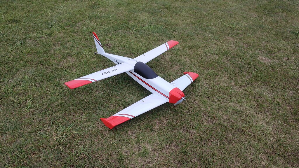 Patryk Sokol Opublikowano 23 Lipca Autor Opublikowano 23 Lipca I tak w ramach update'u, bo dostawałem pytania co z Quickiem: Na tę chwilę Quickie jest całkowicie gotowy do lotu, poza maską silnika o kabinką. Z bólem udało mi się zmęczyć kopyta do vacformingu i zoorganizować tworzywa (HIPS na maskę, PET na kabinkę). Niby można by to oblatać bez maski silnika, ale nie chcę oblatywać dziwnego układu aerodynamicznego bez maski, bo to potrafi być zdradliwe (w Quickim teoretycznie powinno być OK, ale po co ryzykować) W weekend najpewniej wytłoczę oba elementy i pokażę całość. 2